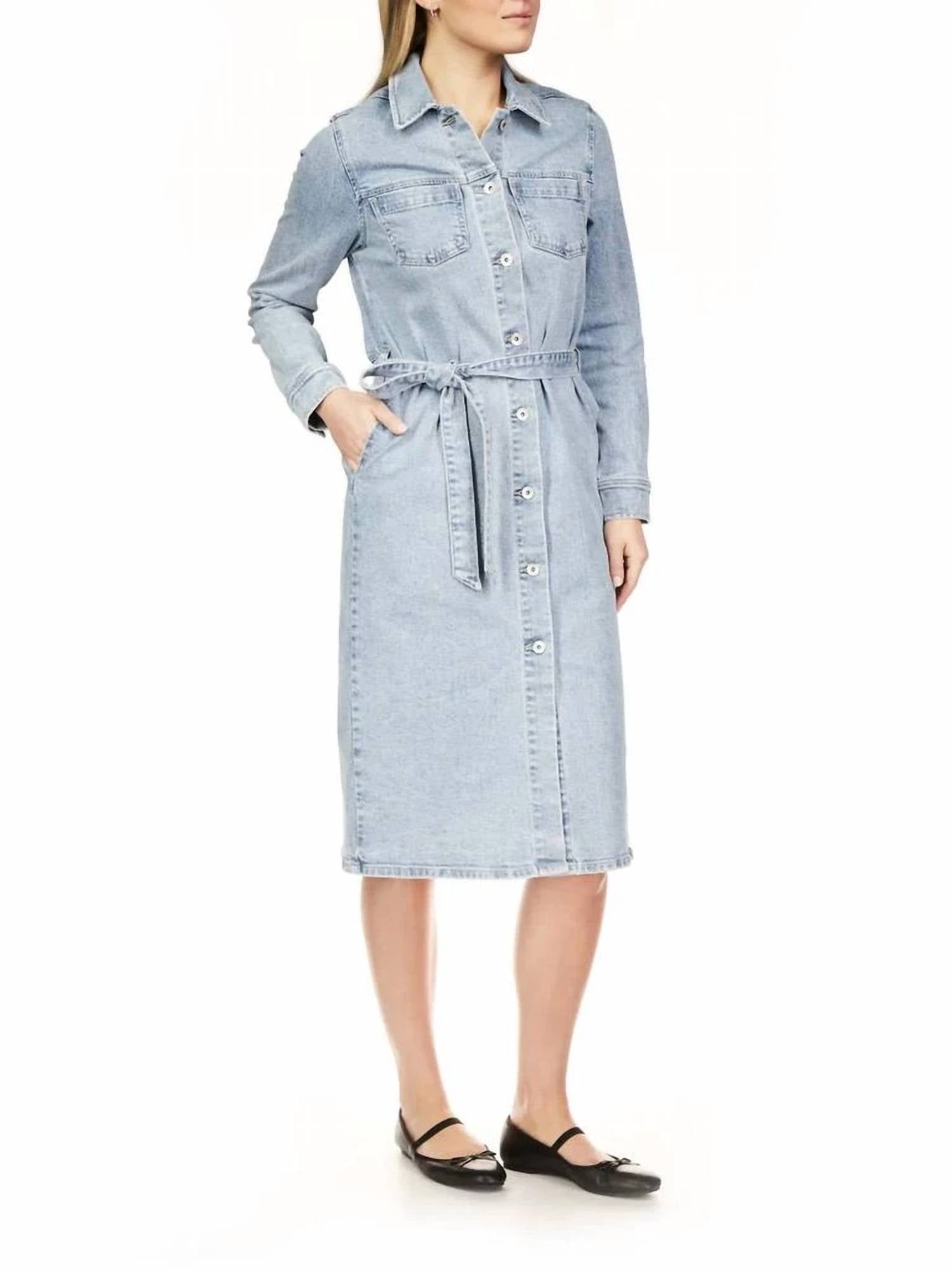 The perfect length dress does exist. Introducing the Sanctuary Wrapped Up Denim Midi Dress in the elegant shade of Virtuous, perfect for versatile occasions like a Holiday Party or a casual day out. This long sleeve dress is crafted from 100% cotton, offering a comfortable sheath silhouette with a textured pattern that exudes a streetwear trend appeal. The dress incorporates practical pockets and features a classic collar neckline with a button closure, ideal for spring gatherings. Care is simple with recommended dry clean only to maintain its durability and timeless charm.
