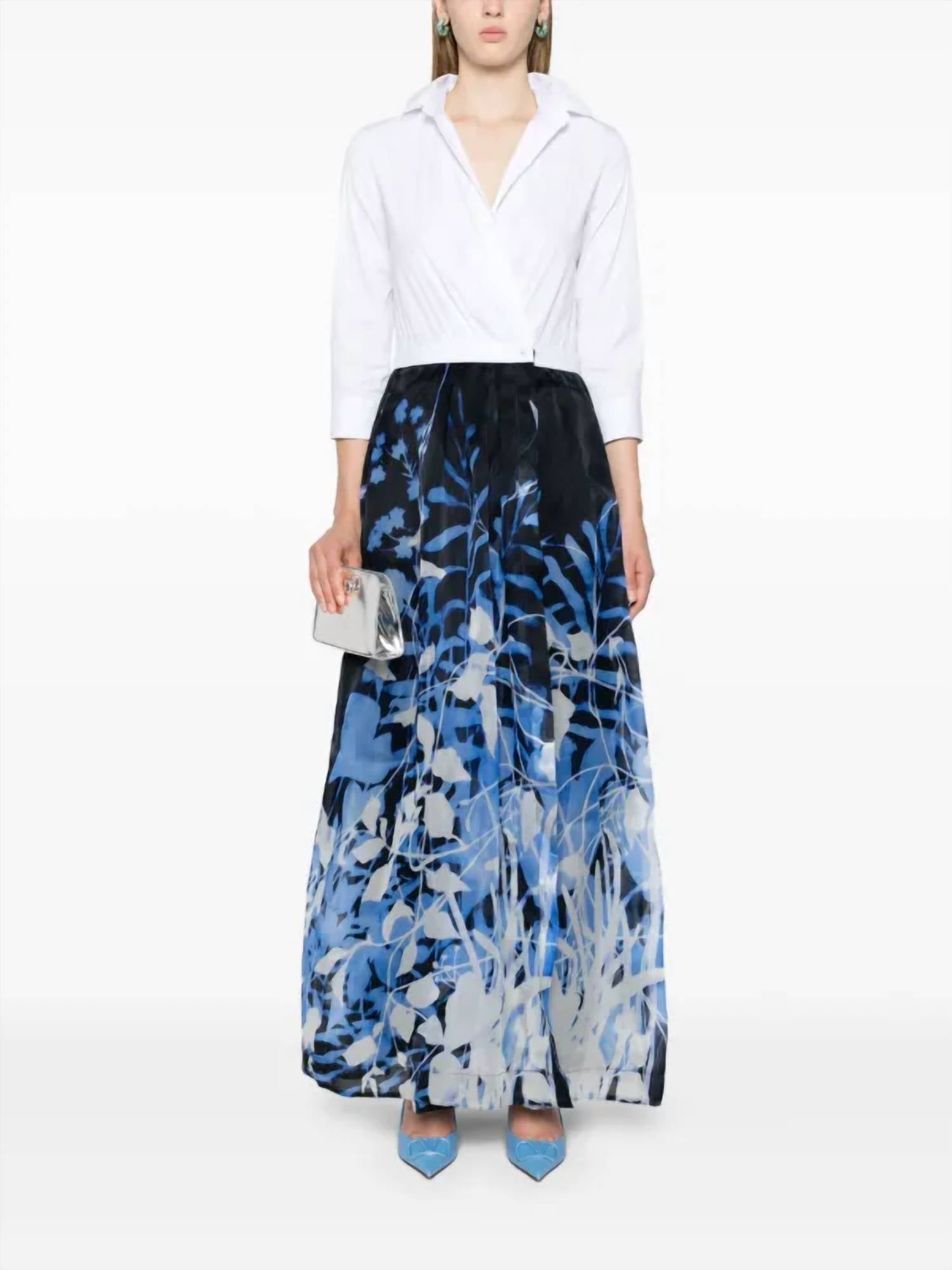 Introducing the Women's Jinny Long Dress by SARA ROKA, a Boho Chic masterpiece in White Navy, perfect for your next dinner party. This elegant maxi dress features a patterned design with a flattering A-line silhouette and a collared neckline. The three-quarter sleeves and button closure ensure a sophisticated yet comfortable fit. Ideal for the spring season, this dress offers effortless style without the need for pockets.