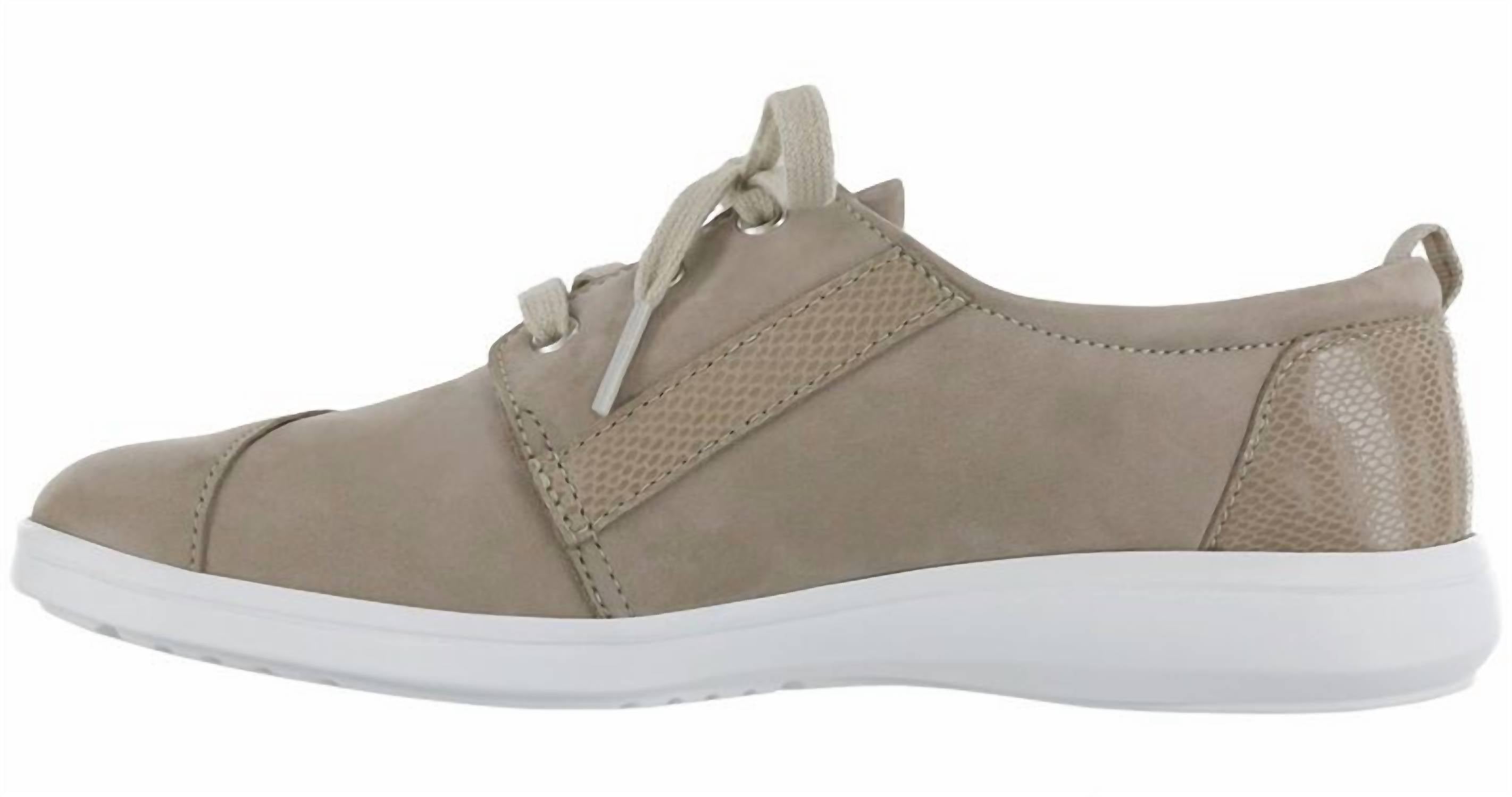 Descubra o Tênis Feminino Marnie da SAS, uma combinação perfeita de conforto e estilo em um elegante toupeira/cobra. Projetado com estrutura Strobel, este tênis apresenta forro acolchoado e couro legítimo para conforto o dia todo. Com salto de 1,125", ele também vem com palmilha removível e a tecnologia TRIPAD® da SAS para manter você se sentindo bem em qualquer ocasião casual. Ideais para o verão e dias de jogo, estes tênis de bico redondo com cadarço personificam uma tendência preppy.