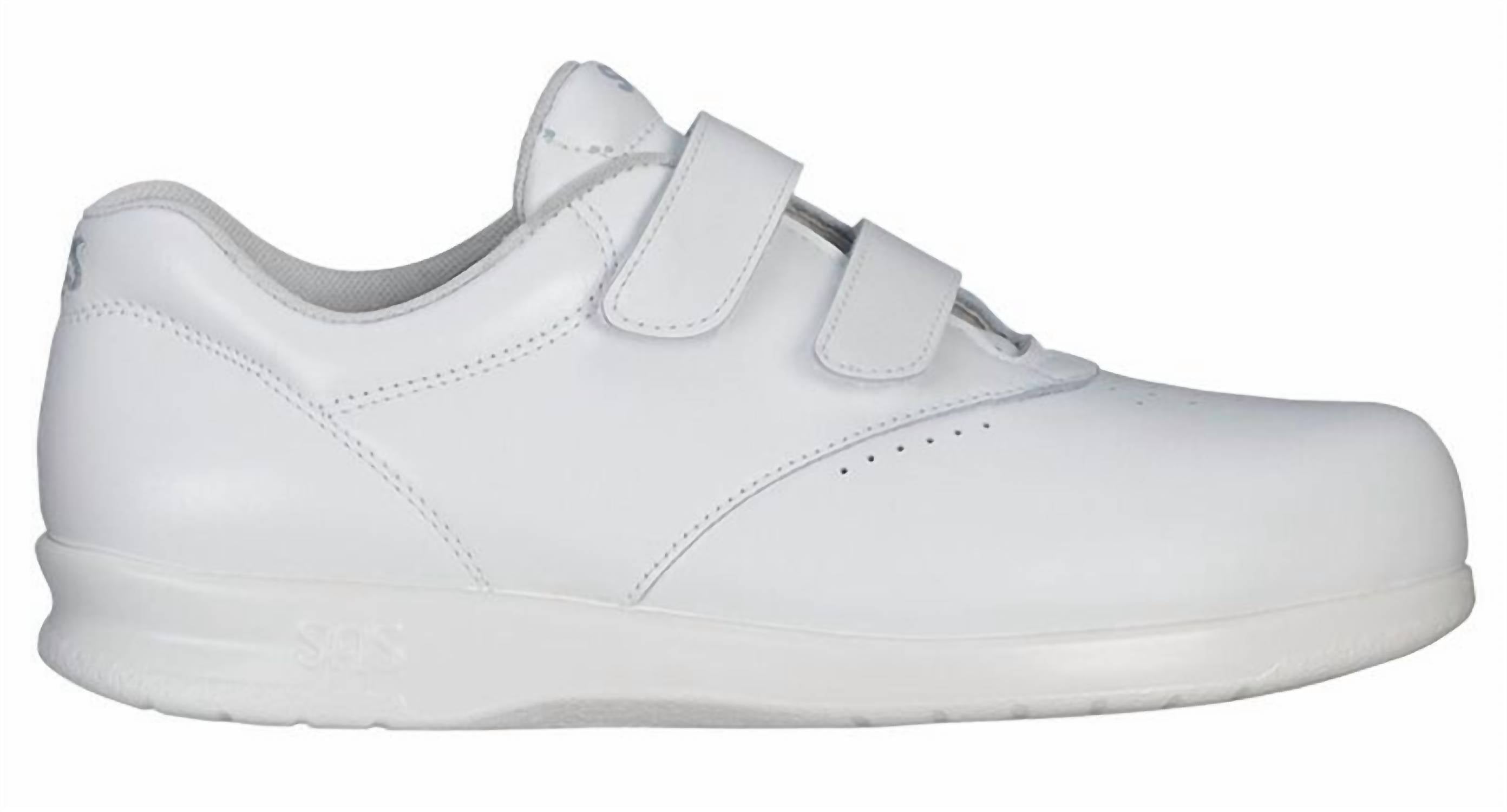 Quando moda e funcionalidade se unem perfeitamente. Apresentamos o Tênis Feminino Me Too da SAS, habilmente criado para conforto e estilo. Este calçado de caminhada em couro branco possui salto plataforma e salto de 3,1 cm, oferecendo suporte e um leve levantamento. Projetado com bico arredondado e tiras SAS EZ ajustáveis, ele garante um ajuste personalizado com profundidade adicional para maior espaço para os dedos. O solado com absorção de impacto e a palmilha acolchoada removível, complementados pela Tecnologia TRIPAD®, proporcionam conforto incomparável a cada passo.