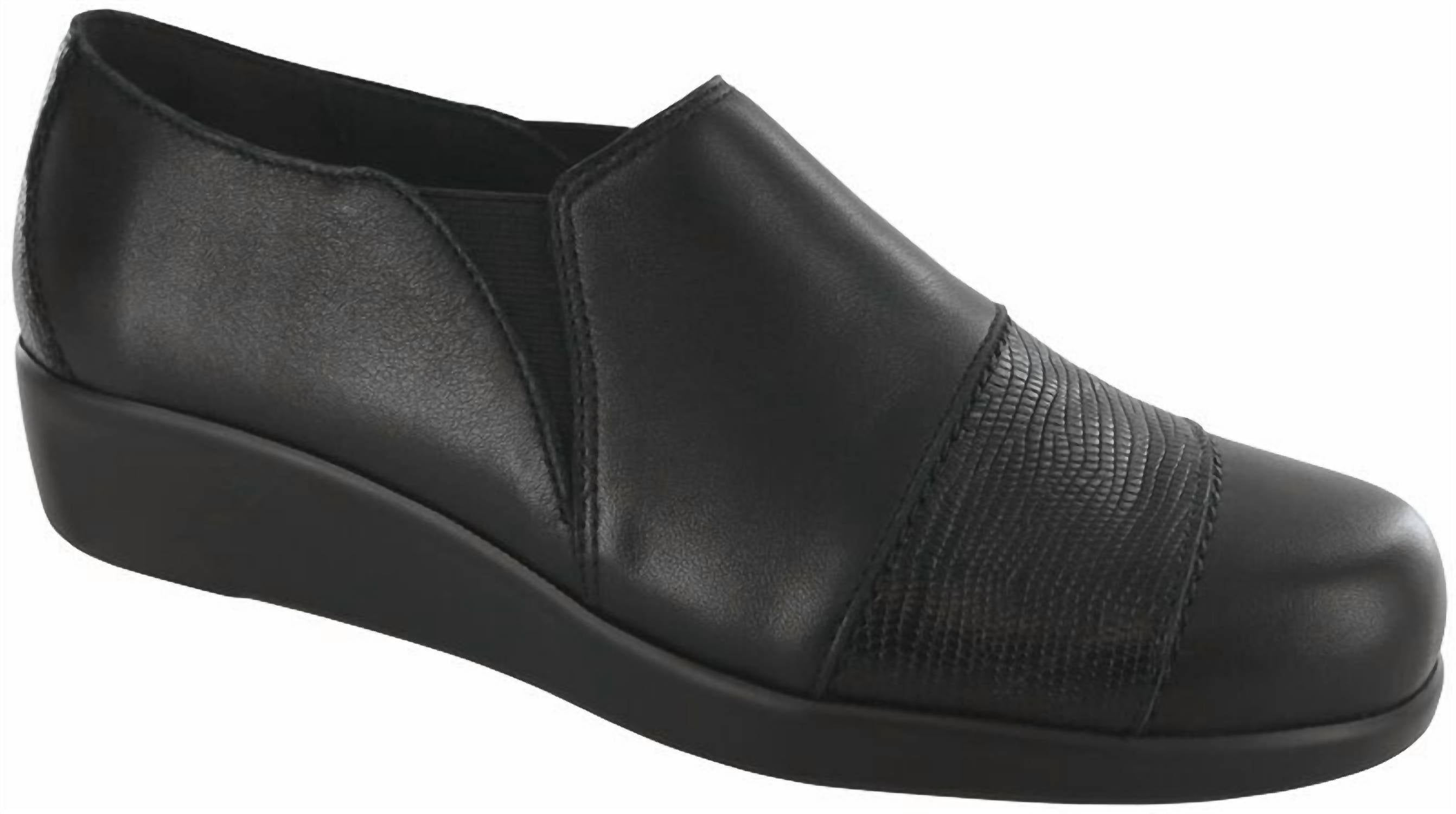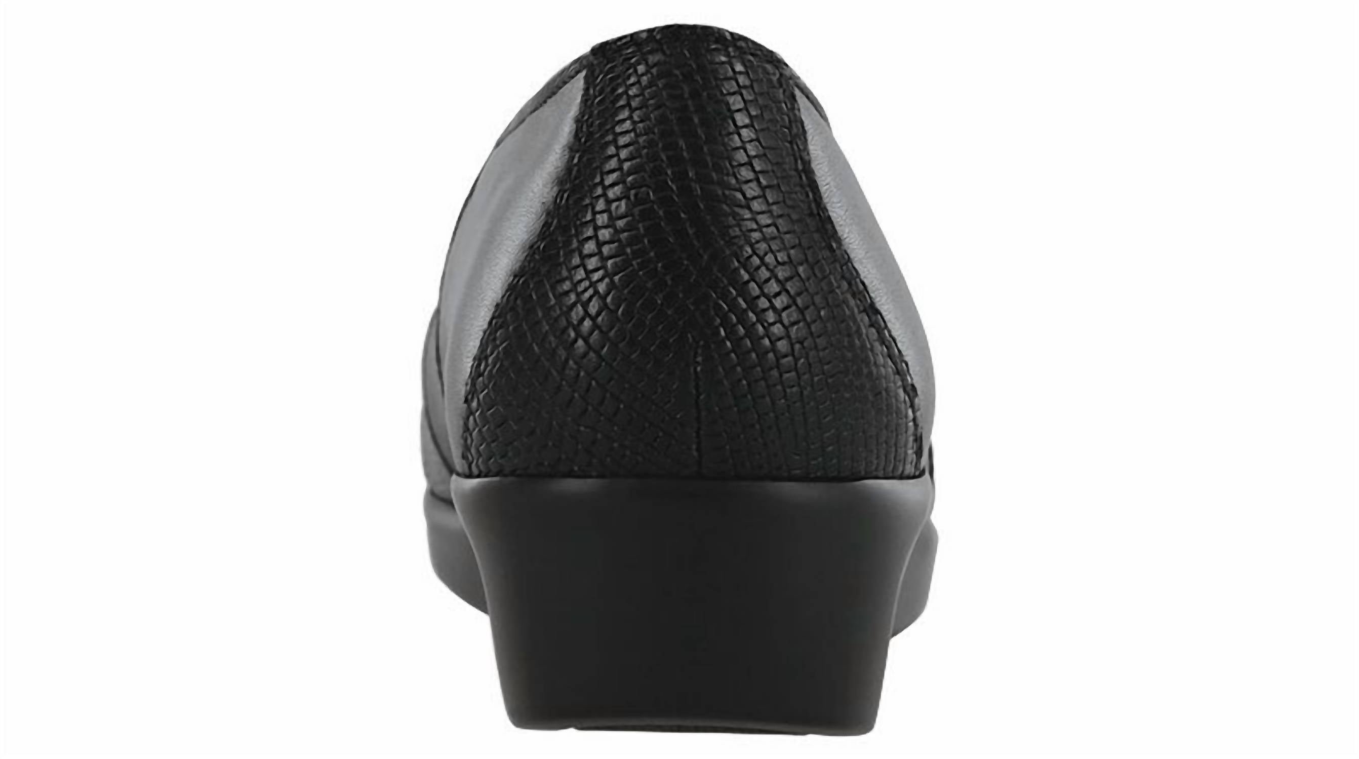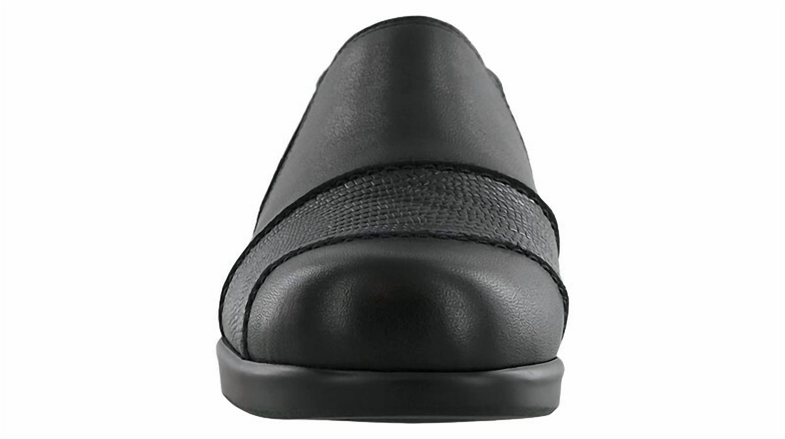 Uma versão elegante e feminina do clássico mocassim. Entre em sintonia com o conforto do Mocassim Feminino Nora da SAS, com cabedal em couro legítimo envernizado e um elegante acabamento em lagarto preto. Projetado com salto baixo de 4 cm, este mocassim oferece uma silhueta moderna, perfeita para viagens e uso diário. O Nora conta com a tecnologia TRIPAD® para suporte superior e um solado Supersoft® que absorve o impacto a cada passo. Este calçado inclui palmilha removível para conforto personalizável e se adapta perfeitamente a qualquer guarda-roupa de primavera ou de Ação de Graças.