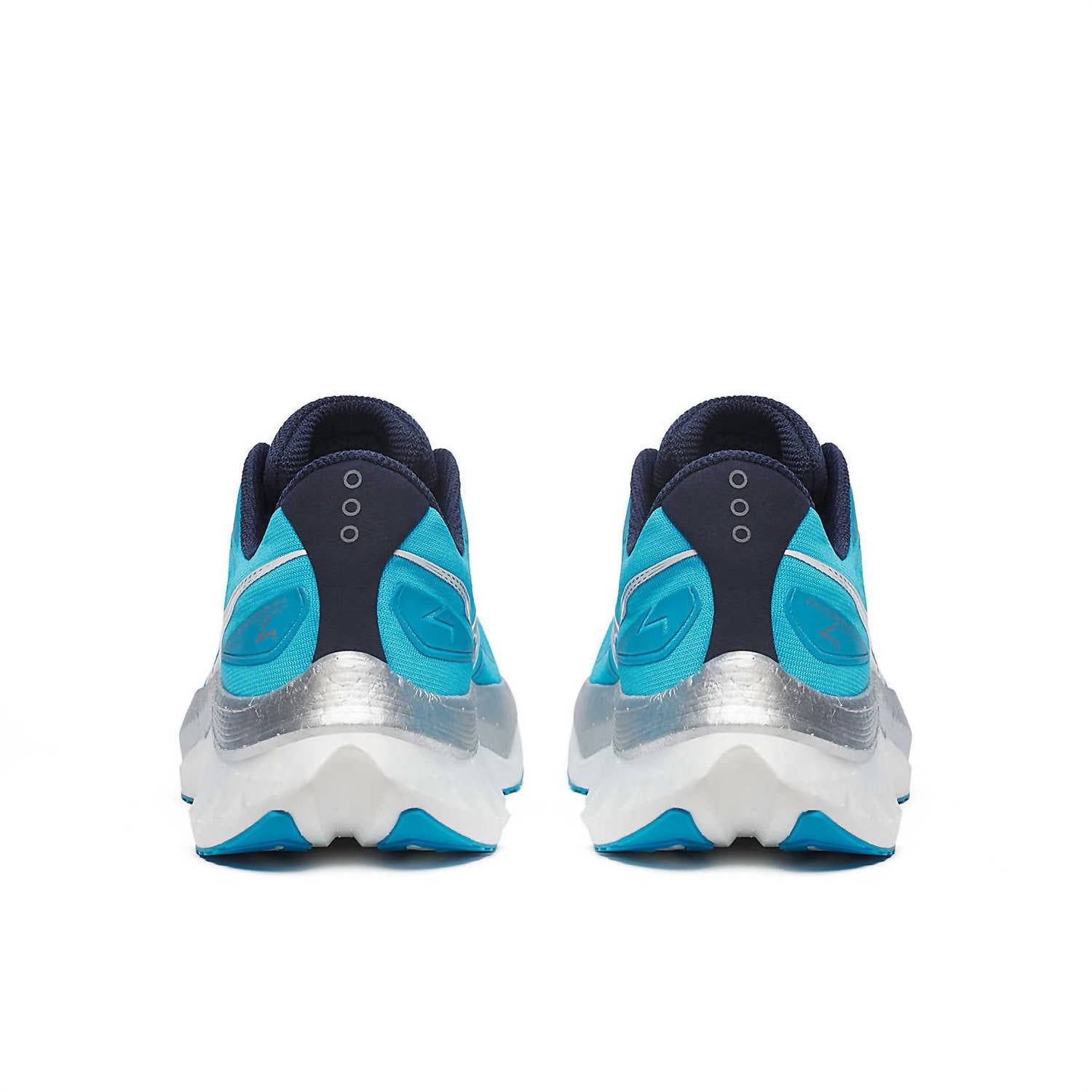 Introducing the Men's Endorphin Speed 4 by SAUCONY, a performance-enhancing running shoe built for serious athletes. This sneaker in vibrant blue is designed with a round toe and flat heel for optimal comfort. Experience the advanced support of its winged nylon-plate combined with SPEEDROLL technology and PWRRUN PB foam cushioning. Crafted for race-day excellence and versatile enough for training sessions, these shoes are a testament to endurance and performance.