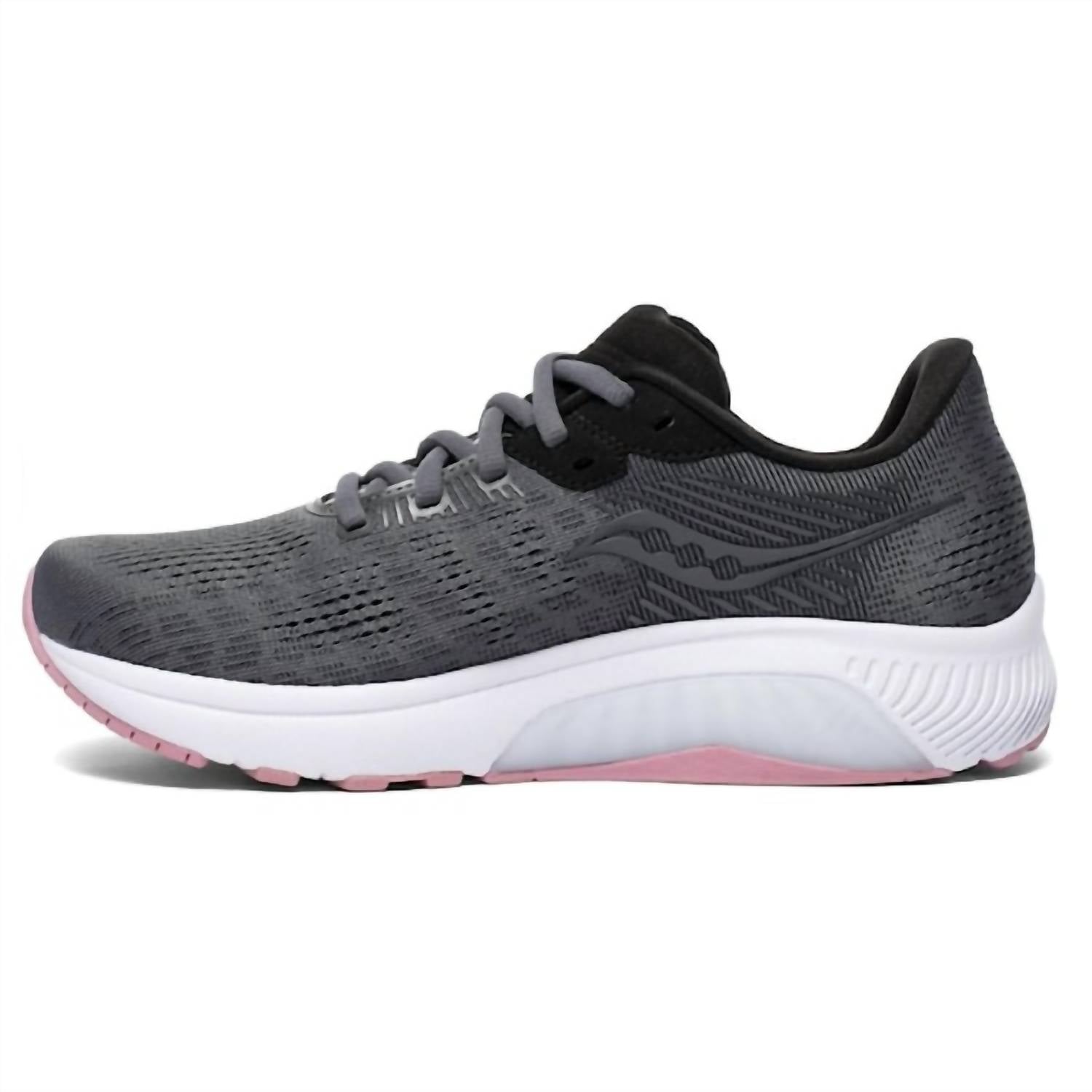 Descubra o Tênis Feminino Guide 14 da Saucony, uma escolha excepcional para corredores que buscam estabilidade. Com uma estrutura de TPU medial tonal e fáscia projetada em 3D para 360 graus de estabilidade, este tênis foi projetado para conforto e um visual elegante. Pesando apenas 266 g, este calçado oferece uma sensação mais leve e um ajuste aprimorado no calcanhar. Perfeito para as tendências de athleisure, sua cor Charcoal/Rose e o formato arredondado do bico são ideais para ocasiões de fitness e treino.