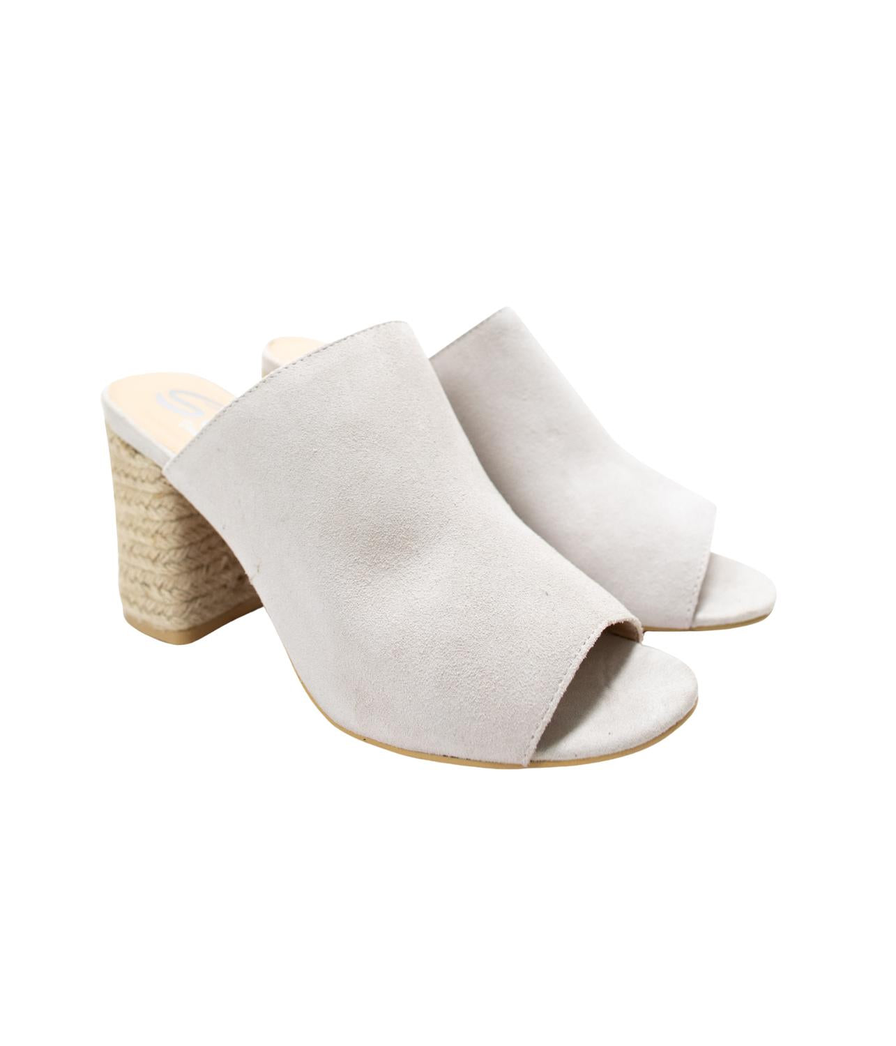 A altura perfeita para o dia e a noite. Cabedal em camurça genuína na cor cinza claro. Palmilha acolchoada. Salto revestido em ráfia. Salto de 5 cm. Elástico no peito do pé. Tamanho real. Se estiver entre dois tamanhos, escolha um maior.