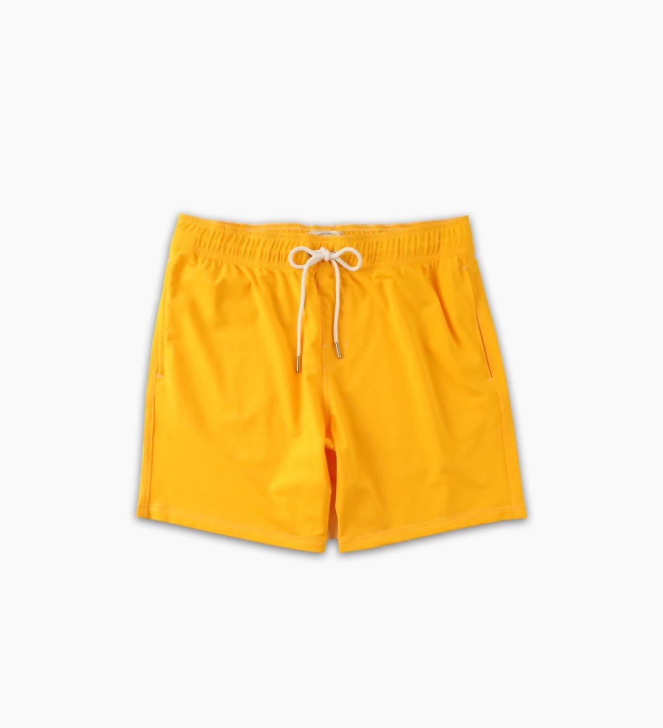 Discover the Riviera Swim Trunk by Sea Culture, a minimalist swim essential in the vibrant Golden Hour hue. Designed for the environmentally conscious, it features a mid-rise with an elastic waistband, 6.5-inch inseam, and solid pattern. Crafted from a 78% Econyl Regenerated Nylon and 22% Elastane blend, this swim trunk offers style and sustainability. Care: Machine wash.