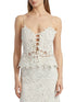 Introducing the Iyla Soutache Camisole Top by SEA, an embodiment of quiet luxury in pristine white. This beautifully embroidered top with detailed soutache features a stylish tie front closure and a scoop neckline, perfect for a summer dinner party. Crafted from a cotton blend, it combines 85% cotton and 15% linen for the body with 100% polyester for the embroidery. Care for this trendy piece with dry clean only instructions. The spaghetti straps and cropped silhouette complete its elegant design, ensuring it fits true to size for women who appreciate subtle, elegant patterns.
