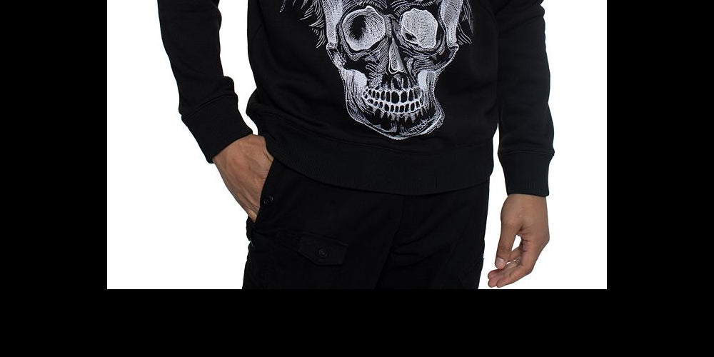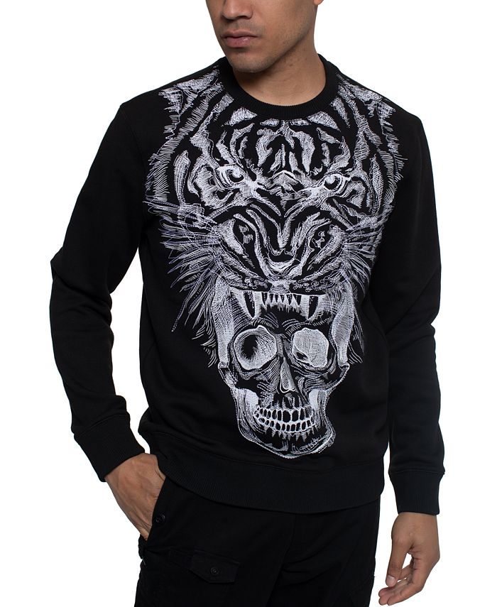 Que coisa mais maluca! Este moletom Sean John de manga comprida apresenta uma estampa de tigre com uma caveira na boca. Chega de falar. | Caimento clássico | Gola redonda | Estampa frontal | 100% algodão | Lavável à máquina | Importado
