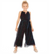 Macacão listrado metálico com lantejoulas e corações para meninas grandes, azul, tamanho pequeno