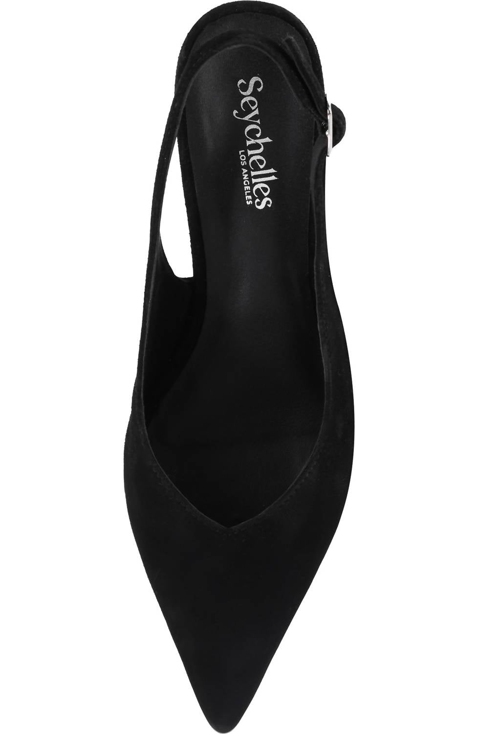 Conheça o Scarpin Feminino Candlelight Slingback da Seychelles, uma escolha estilosa para qualquer ocasião, em elegante camurça preta. Com bico fino e salto gatinho baixo de 5 cm, este scarpin combina sofisticação e conforto. O calçado possui tira slingback ajustável com fecho de fivela e palmilha OrthoLite® para maior conforto. Confeccionado com cabedal e forro de couro e solado sintético, este salto é importado, garantindo a qualidade com a qual você pode contar.