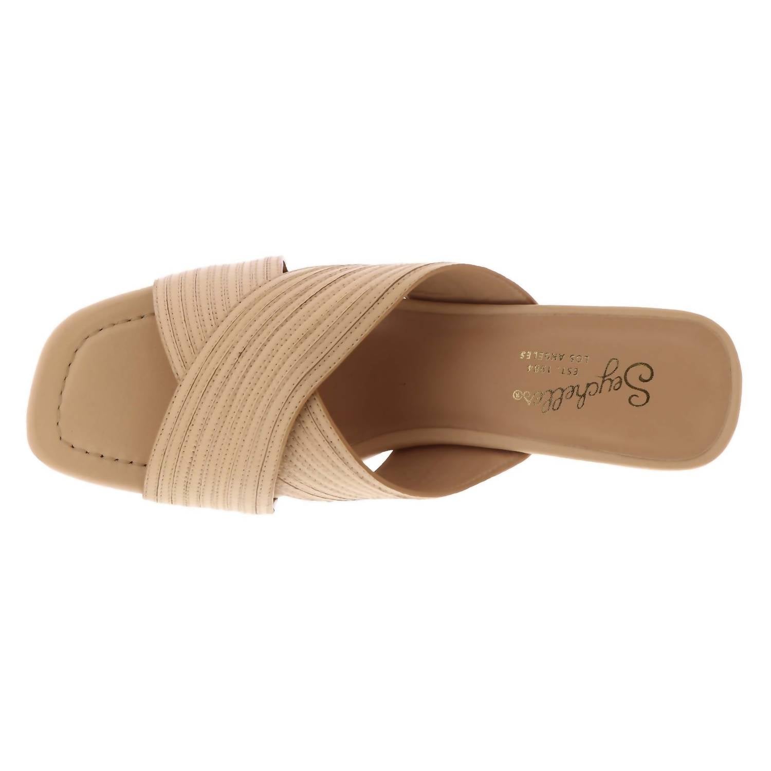 Flowy dresses, cropped pants, and even jumpsuits... this sandal works with them all! Step into sophistication with the Seychelles Women's Fleet Sandal in Nude, a minimalist choice for summer soirées. These sandals boast a 3-inch stiletto heel, crafted from textured leather with elegant cutout detailing that exudes style. Featuring an open square toe for a chic look and an easy slip-on design, they promise both comfort and fashion. Ideal for evening events or Easter gatherings, they are finished with a durable man-made outsole.