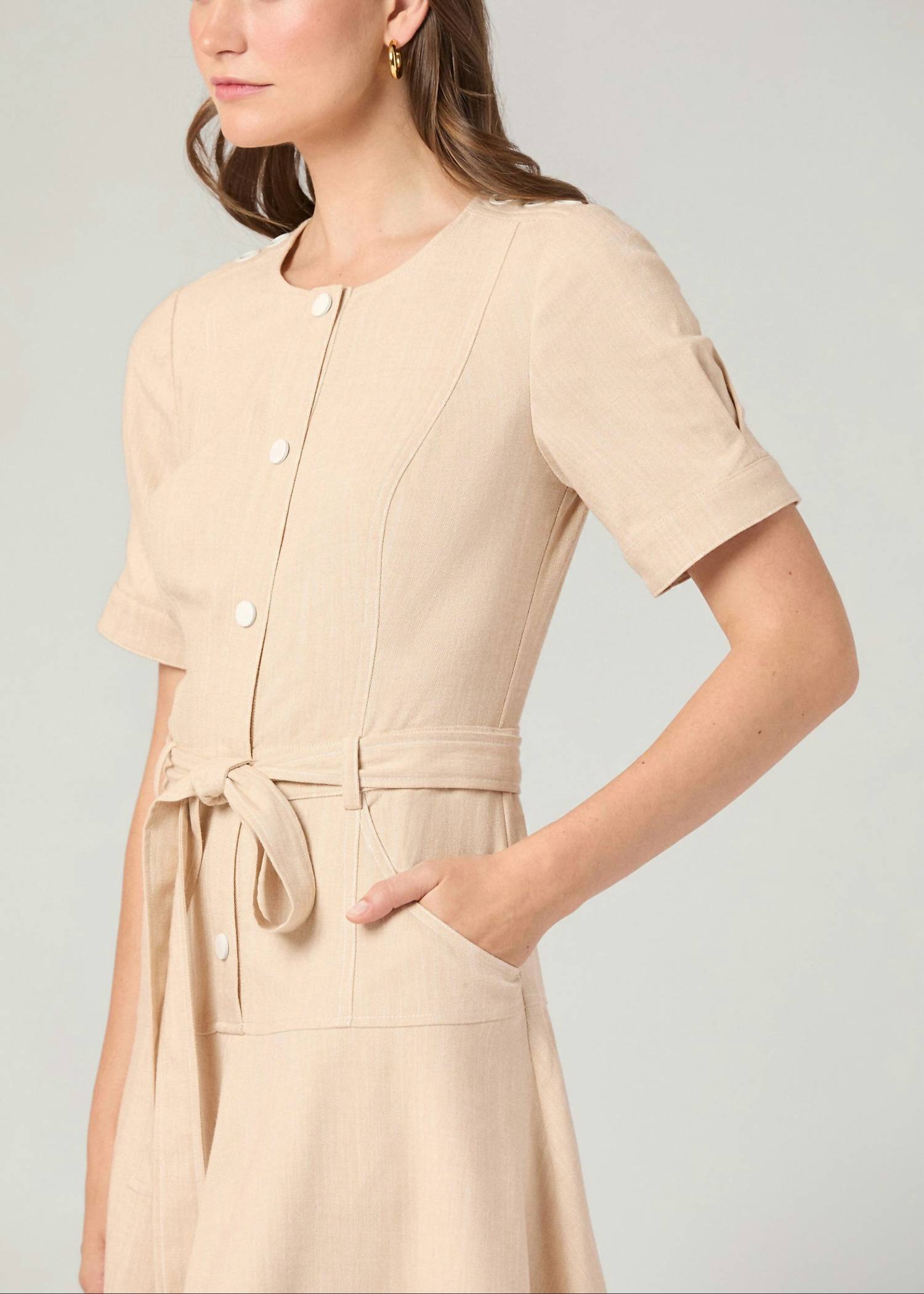 O tipo de vestido fácil e elegante que você vai usar durante toda a estação. Este vestido de cor sólida apresenta mangas curtas e gola redonda clássica, acentuada por uma silhueta em A que oferece um visual atemporal. Os bolsos adicionam um toque prático, enquanto as instruções de cuidado recomendam lavar na máquina e secar na horizontal. Ideal para quem busca estilo e conforto em uma peça elegante.
