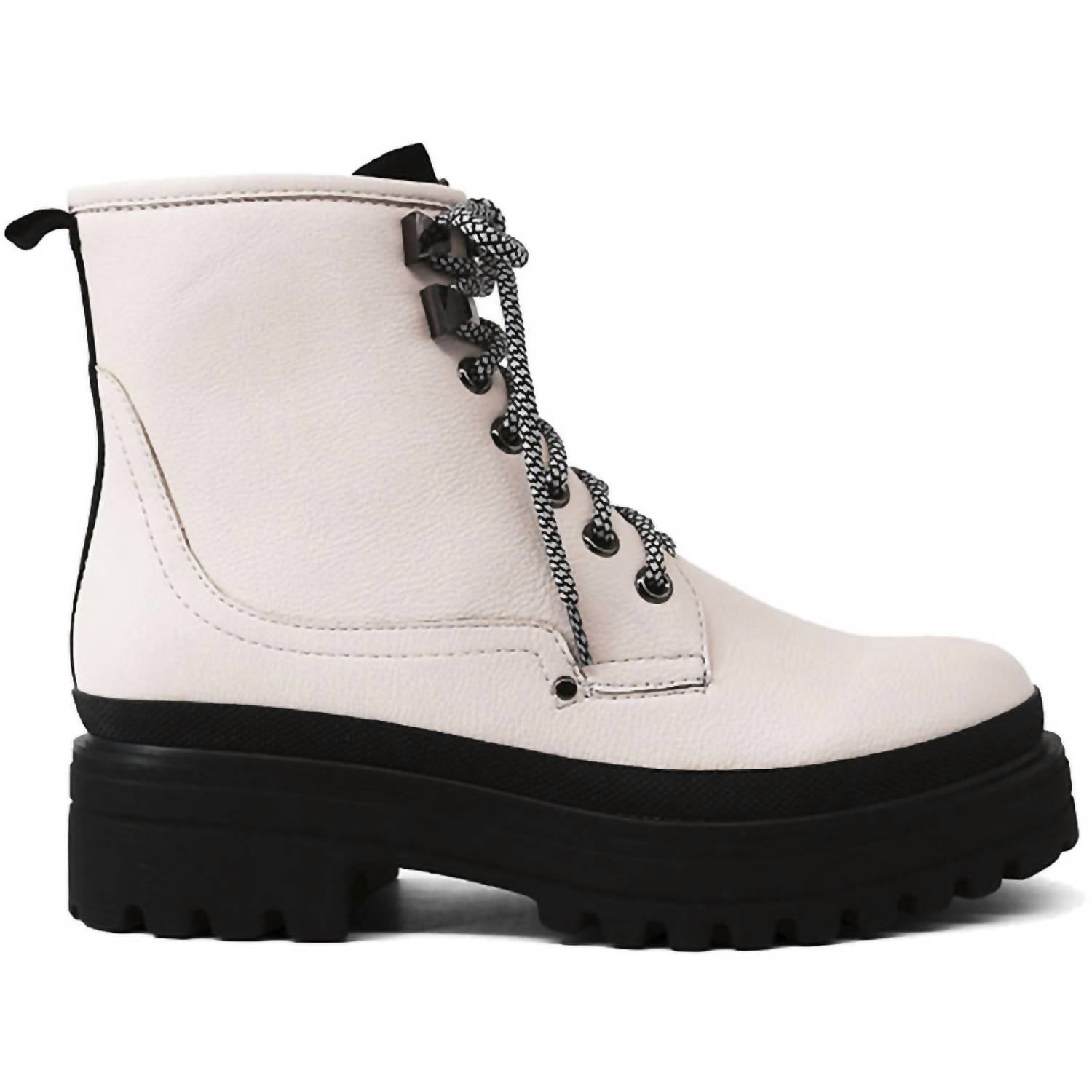 Saia com estilo com botas de combate brancas de cano alto. Com cadarço e bico arredondado fechado, garantindo conforto e estilo. Confeccionadas com solado de borracha resistente, oferecem excelente tração e durabilidade. Com salto bloco baixo, entre 3,9 cm e 5 cm, elas combinam conforto com um visual ousado e moderno.