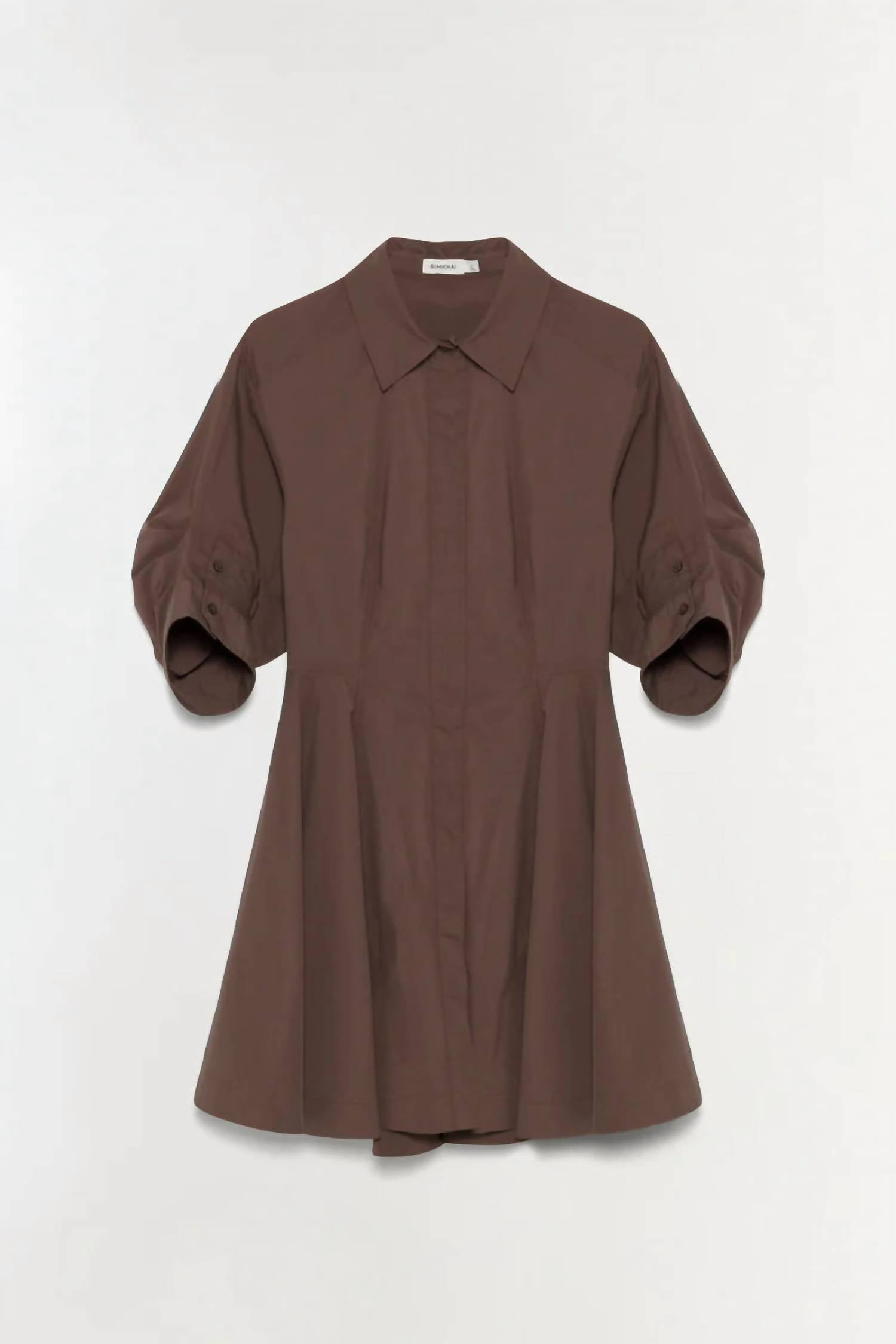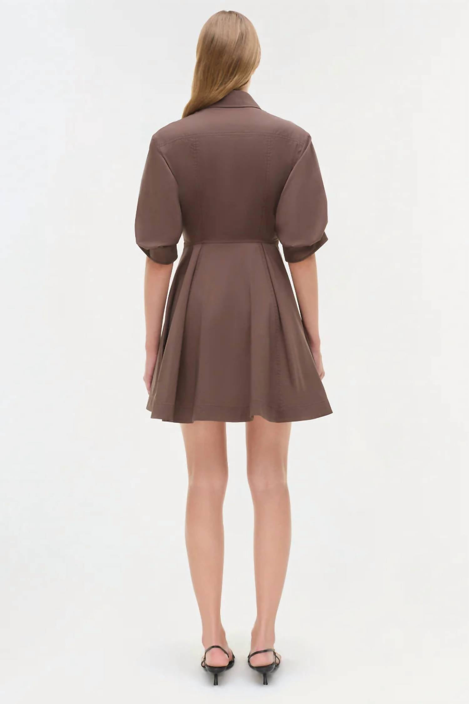 Discover the Jazzie Short Sleeve Mini Dress by SIMKHAI, a chic choice for your fall wardrobe in a monochrome chocolate hue. This mini shirtdress features elegant elbow sleeves and a stylish covered button closure. Expertly crafted from 100% cotton, this imported dress promises breathable comfort and sophistication. Care: Machine wash or dry clean for best results.