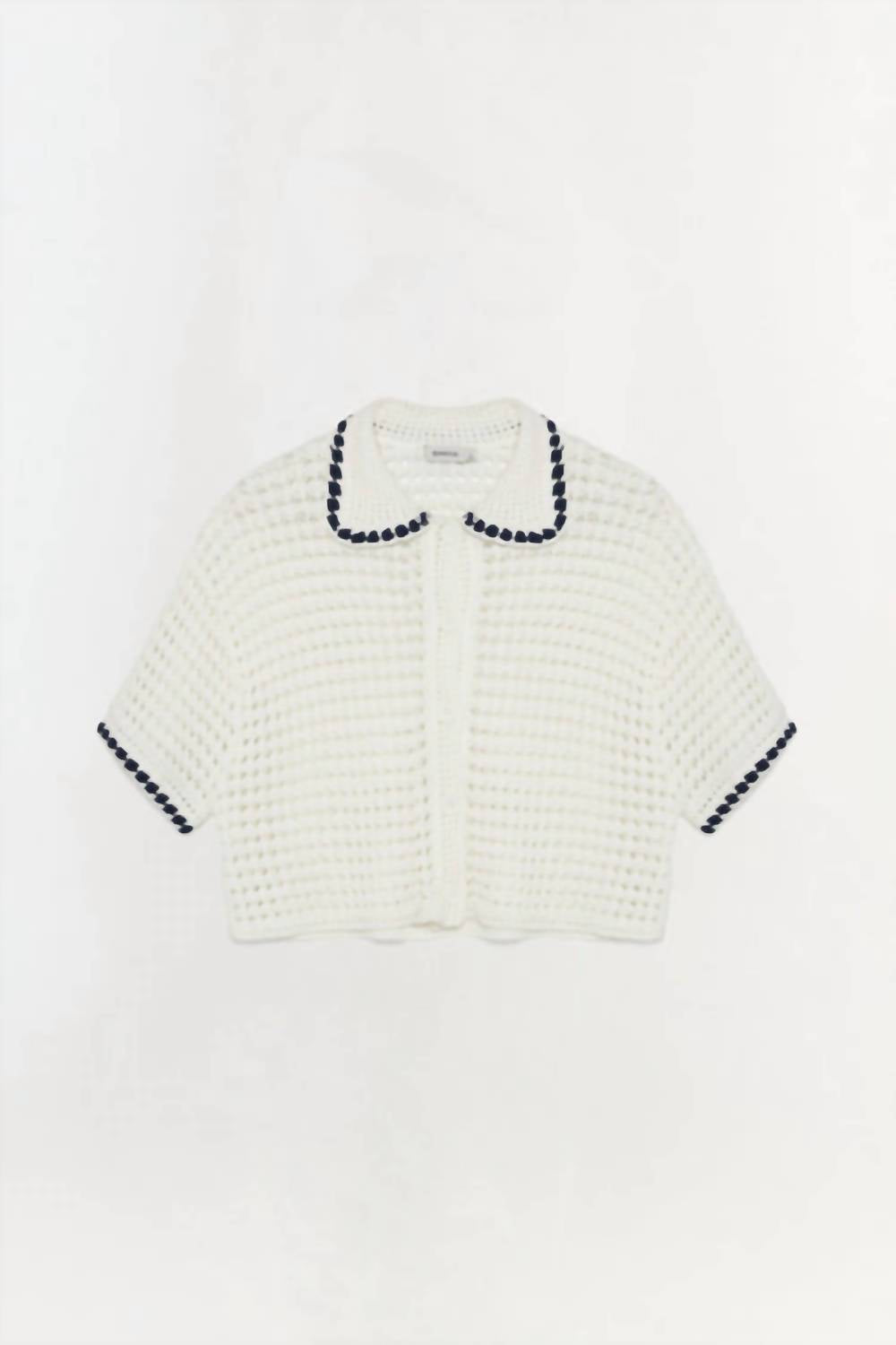 Look no further, you just found your perfect tee! Introducing the Shiloh Camp Shirt by SIMKHAI, a breezy addition to your wardrobe perfect for vacation-style elegance. This short sleeve ivory shirt combines a touch of boho chic with a textured pattern for that summer-ready vibe. Made from a lightweight cotton blend of 58% cotton and 42% polyester, it features a classic collar and a button closure for easy wear. Care instructions recommend dry cleaning to maintain its refined style.