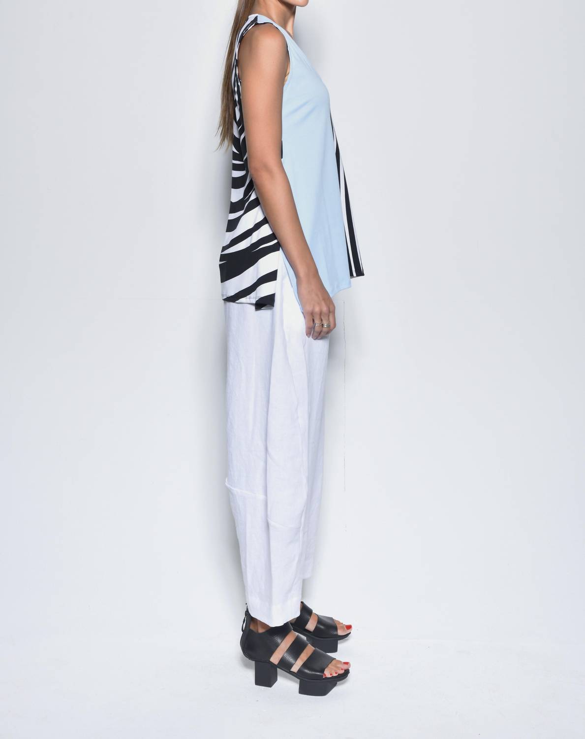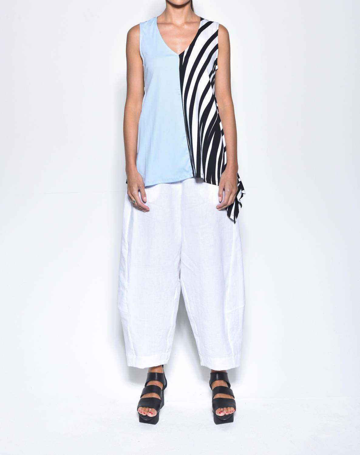 Apresentamos o Top Sem Mangas Irene da Simply Mila, a combinação perfeita de conforto e estilo em um padrão Celeste/Espiral suave. Confeccionado em 100% algodão, este top feminino com decote em V e design estampado é ideal para usar nas férias e é fabricado nos EUA. Seu fecho pull-on facilita a sobreposição de camadas, enquanto a bainha irregular confere um toque moderno e urbano para os passeios de verão. O cuidado é simples, com instruções de lavagem à máquina; seque ao ar livre e use ferro frio, se necessário. Disponível nos tamanhos XS (78 cm de busto, 67 cm de comprimento) a XL (102 cm de busto, 72 cm de comprimento).