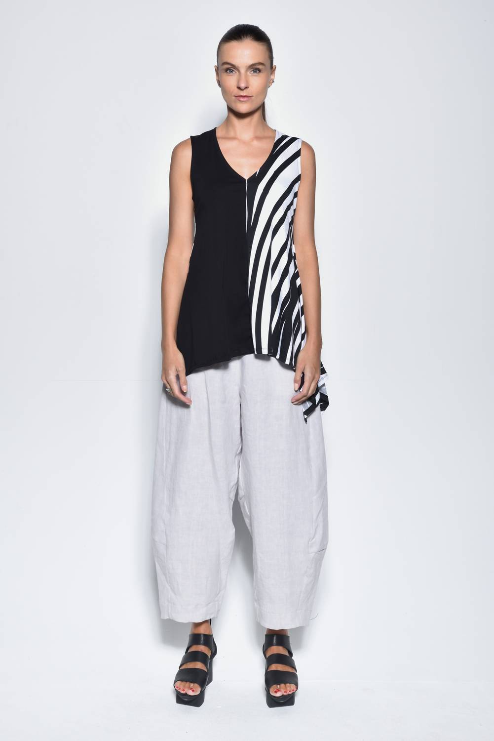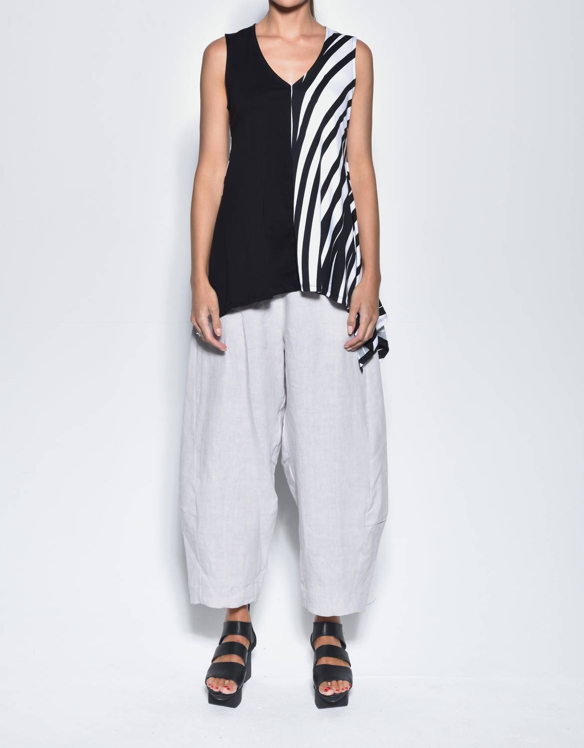 Apresentamos a Blusa Sem Mangas Irene da Simply Mila, essencial para o seu guarda-roupa de verão, com um design chique em Preto/Espiral. Esta blusa sem mangas apresenta um elegante decote em V e bainha irregular, confeccionada em tecido 100% algodão macio e respirável. Fabricada nos EUA, possui um prático fecho de pressão para maior conforto e praticidade. Ideal para férias ou dias descontraídos no estilo boho chic, esta blusa requer lavagem à máquina em ciclo frio e delicado, do avesso, e deve ser seca ao ar livre. Disponível em vários tamanhos, com medidas que incluem comprimento frontal e traseiro de 67 cm a 72 cm.