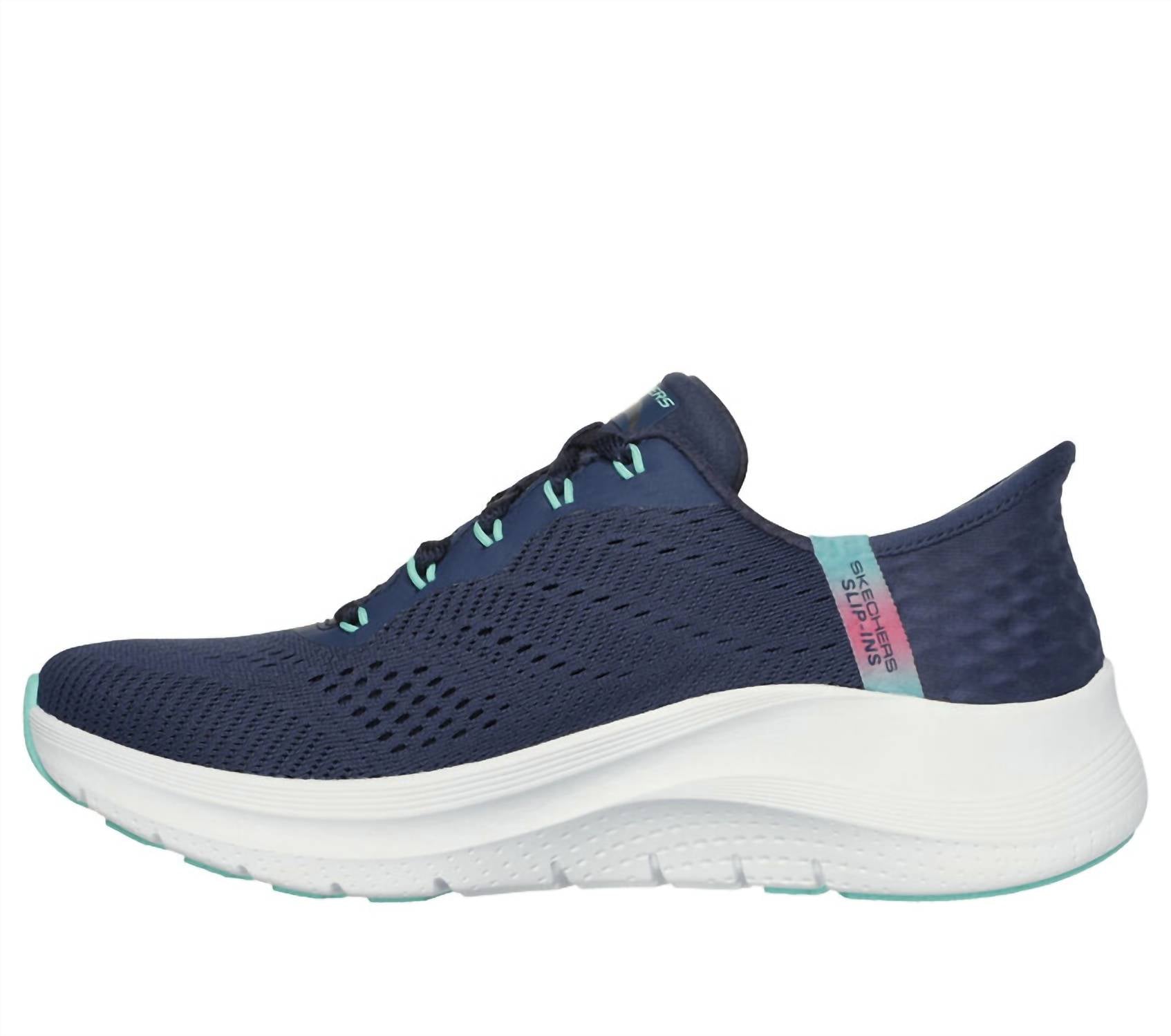 Step into effortless comfort with the Skechers Easy Chic Slip-ins, a stylish sneaker in Navy designed for convenience and support. These sneakers feature an engineered mesh upper with synthetic hot melt overlays and patented Arch Fit® insoles for podiatrist-certified arch support. Enjoy the comfort of the removable insole that molds to your foot, reducing shock with every step. Crafted with 100% vegan materials, these sneakers boast a shock-absorbing midsole and a 1 3/4-inch heel height. Care: Machine washable for easy maintenance.