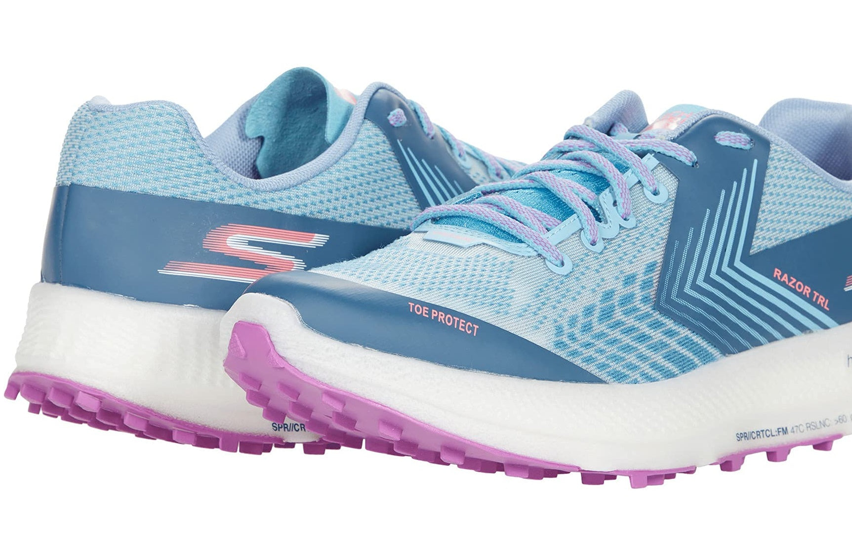 Tênis de corrida feminino Skechers Go Run Razor Trl azul/roxo