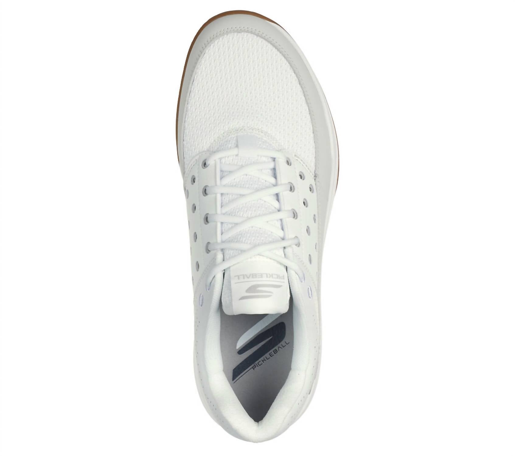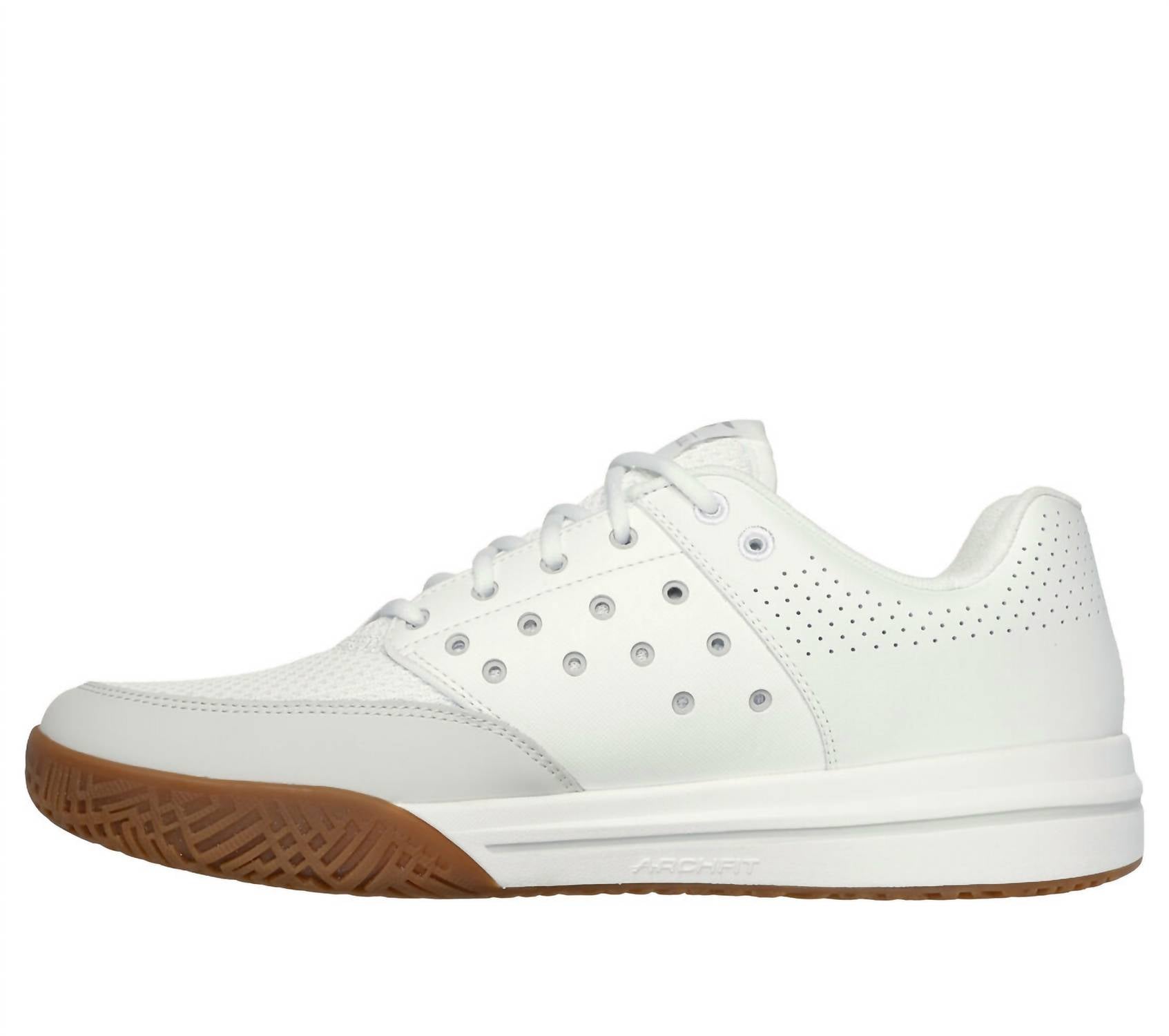 Eleve seu jogo com conforto incomparável com o Skechers Viper Court Luxe. Este tênis de corrida de alto desempenho com cadarço apresenta cabedal em couro e material sintético, palmilha Arch Fit® removível e amortecimento leve em espuma ULTRA GO®. Este design é complementado pelo solado Goodyear® Rubber Performance, desenvolvido para maior durabilidade e controle na superfície da quadra.