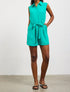 Discover the Mira Collared Romper by SKIES ARE BLUE, a chic addition for your winter wardrobe in Light Emerald. This sleeveless, collared romper features a hidden button closure along the front, with the added sophistication of a tie waist and functional pockets. Crafted from 52% recycled polyester and 48% polyester, this piece combines style with a nod to sustainability. For care, simply hand wash to maintain its vibrant appeal.