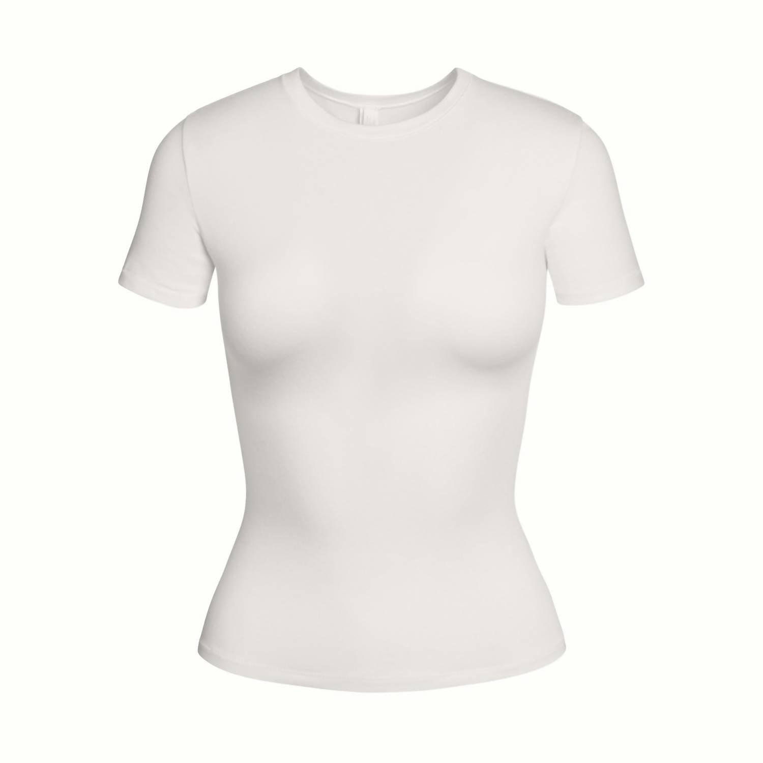Esta camiseta clássica de manga curta será sua peça essencial nesta temporada e nas próximas. Conforto e estilo incomparáveis, confeccionados com mangas curtas e decote redondo justo. Apresenta detalhes em pesponto nas mangas e na barra. Composto por 90% algodão e 10% elastano, oferece um caimento elástico e justo ao corpo que valoriza suas curvas. O fecho é prático e prático. Para cuidados, lave à máquina com água fria, não use alvejante, seque em temperatura baixa e passe a ferro em temperatura fria, conforme necessário.