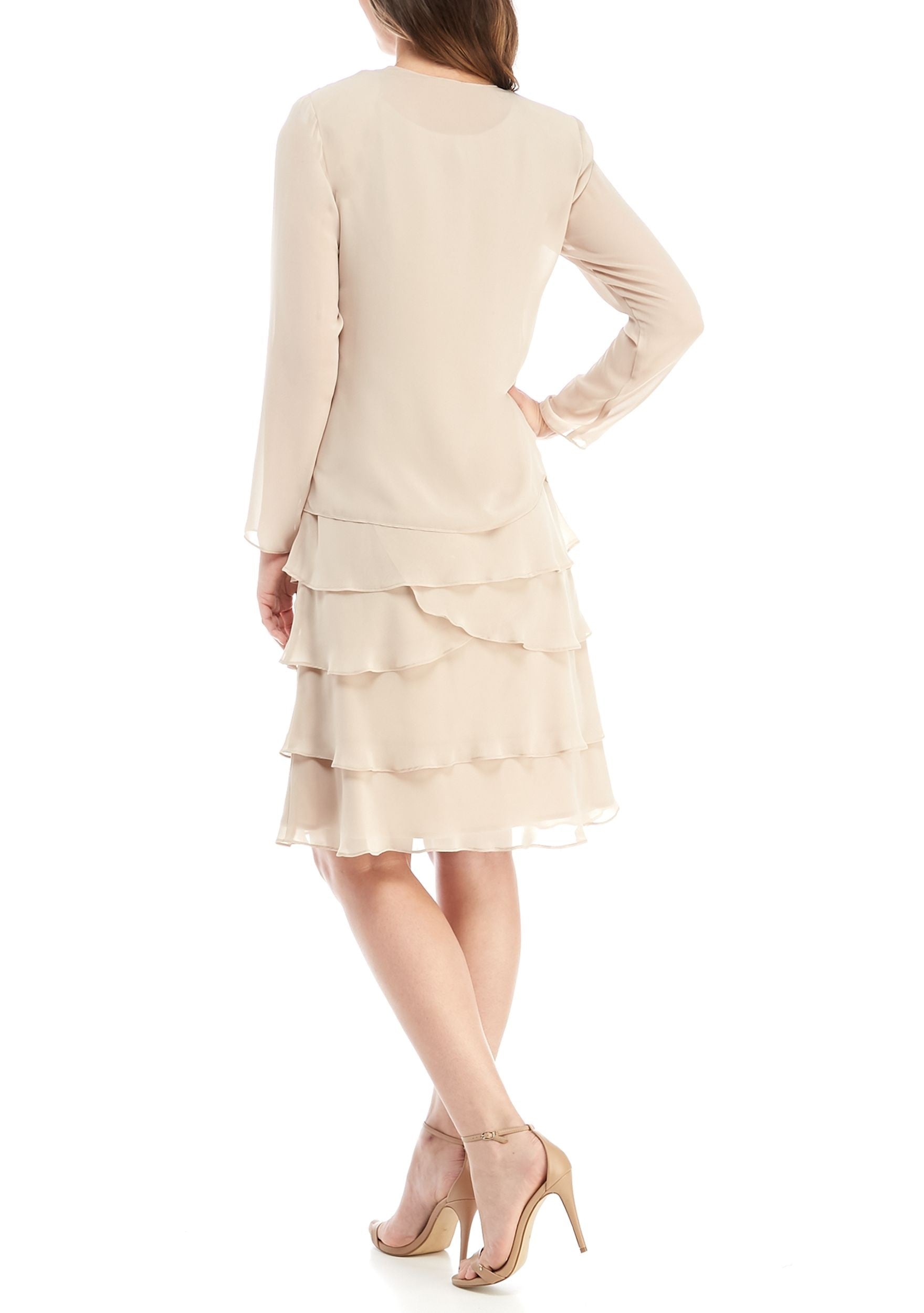 SL Fashions Jaqueta feminina com abertura frontal e vestido em camadas, bege, tamanho 12