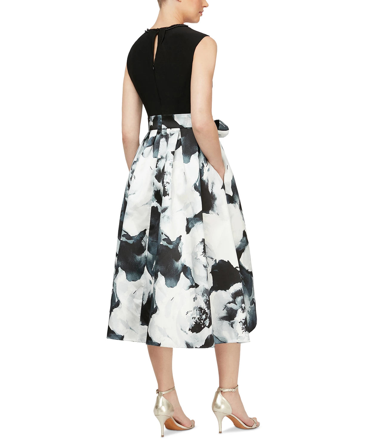 Fecho de zíper nas costas | Ajustado no peito e na cintura; saia rodada e fluida | Importado | Cinto autoamarrável; saia estampada de cintura alta e baixa | ID da Web: 11630023