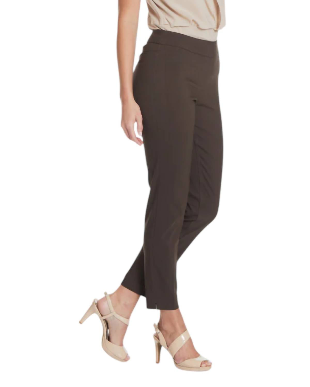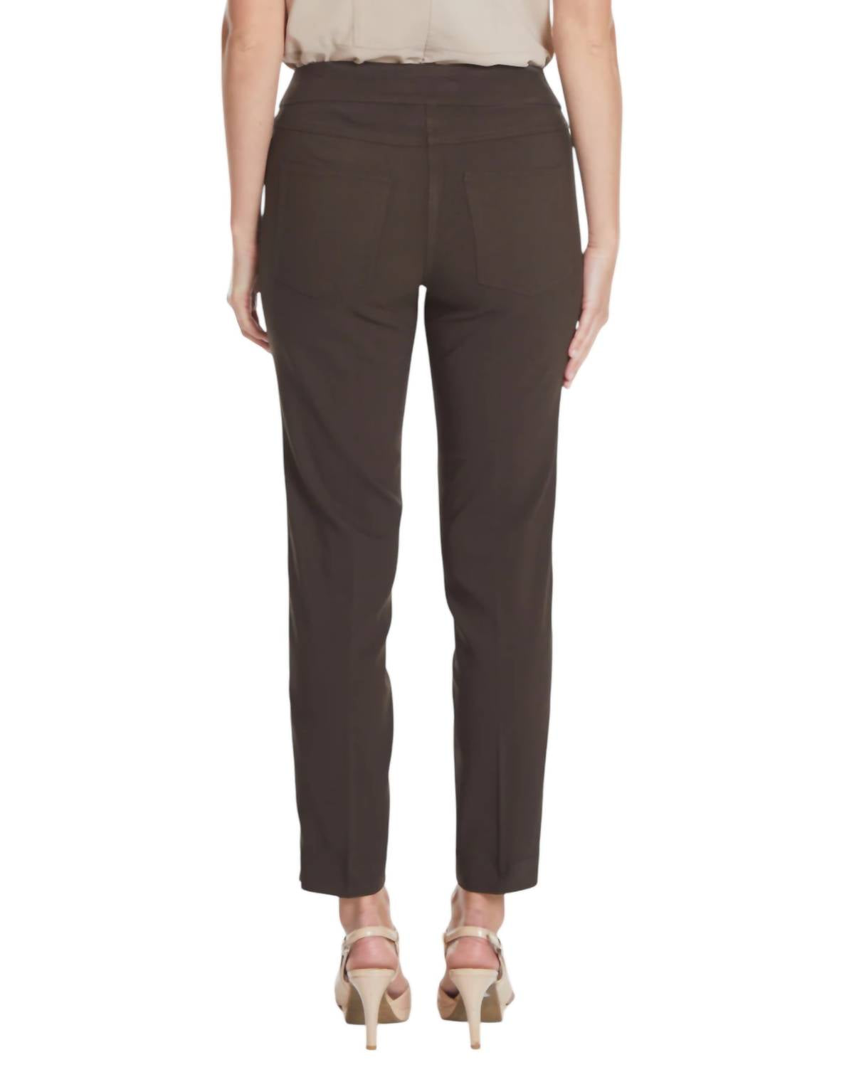 Abrace o conforto e o estilo com a Calça Slimsation By Multiples Pull-On Ankle Pant na elegante cor Bark. Esta calça feminina possui fecho pull-on com cós largo e painel de controle na barriga para um ajuste perfeito. Material: 74% rayon, 21% nylon e 5% elastano, garantindo uma experiência elástica e confortável. Cuide desta calça com facilidade lavando-a à máquina com água fria. Com uma perna justa na altura do tornozelo e uma costura interna de 73 cm, ela inclui bolsos frontais falsos clássicos e bolsos traseiros funcionais para maior praticidade.