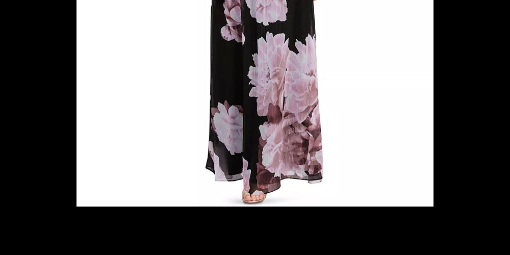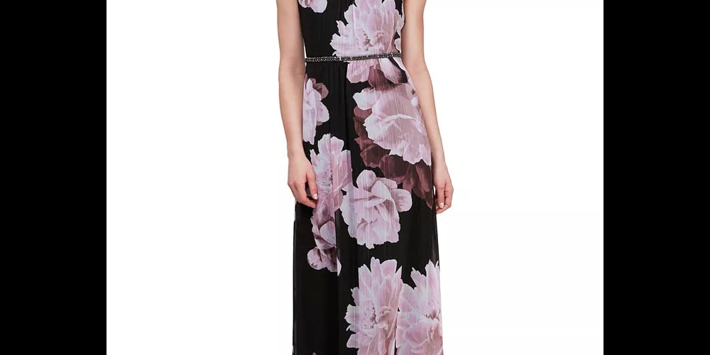Aproximadamente 58-1/2 de comprimento, do centro do pescoço até a bainha. O comprimento é baseado no tamanho 8 e varia 1/4 entre os tamanhos. | Decote redondo plissado | Fecho de zíper nas costas | Enfeite na cintura; detalhe metálico em toda a peça; bolsos na costura | NOTA IMPORTANTE: Este item chega com uma etiqueta de devolução anexada e instruções para remoção. Após a etiqueta ser removida do vestido, este item não poderá ser devolvido.
