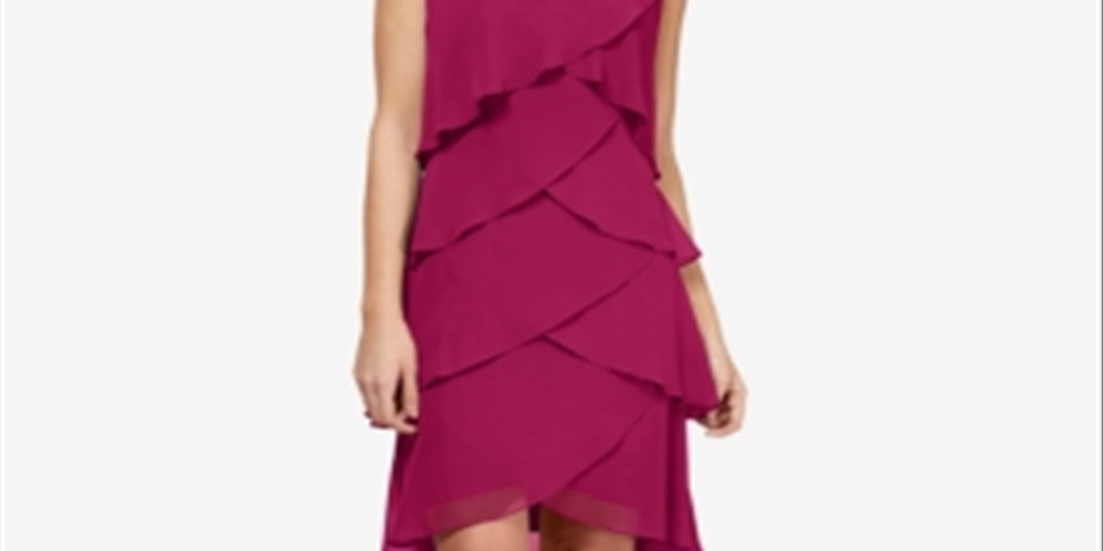 Vestido de chiffon com babados em camadas e babados em framboesa - Feminino | Babados em chiffon em camadas dão uma animação graciosa a este elegante vestido de chiffon | Projetado em um rico tom framboesa que se destaca de dia ou de noite | 100% poliéster Lavar à mão; secar no varal Importado