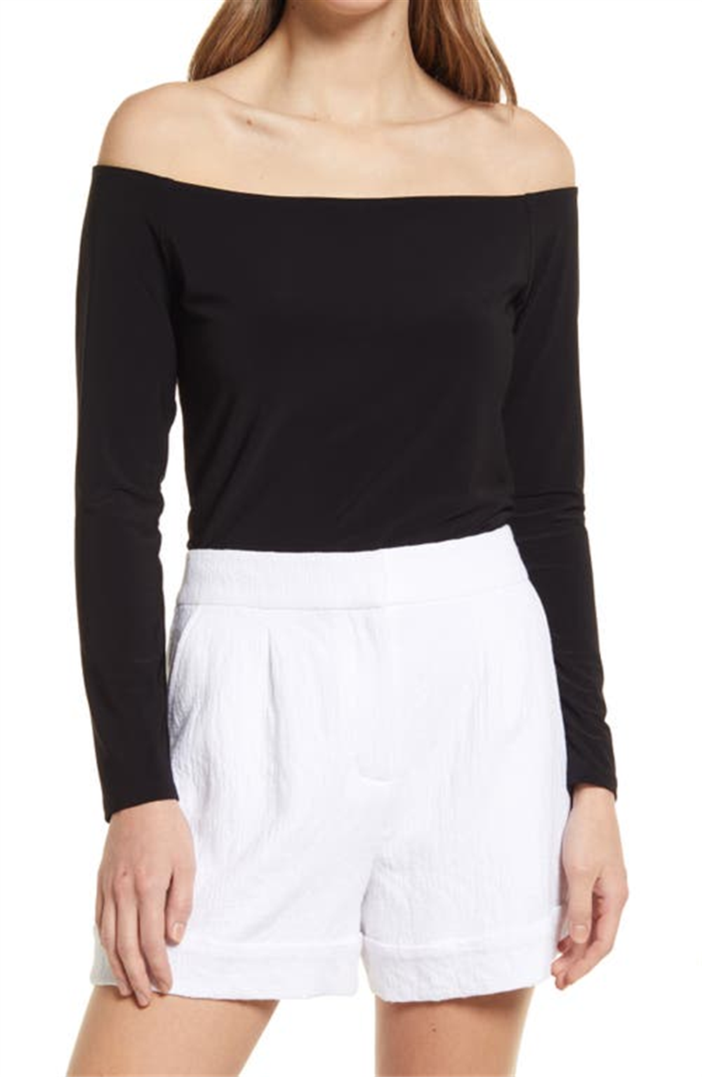 Design ombro a ombro | Cor preta | Marca Halogen® | Material de malha | Disponível em tamanho pequeno | Disponível na Nordstrom | Estilo versátil | Ajuste confortável | Tecido durável | Estética elegante