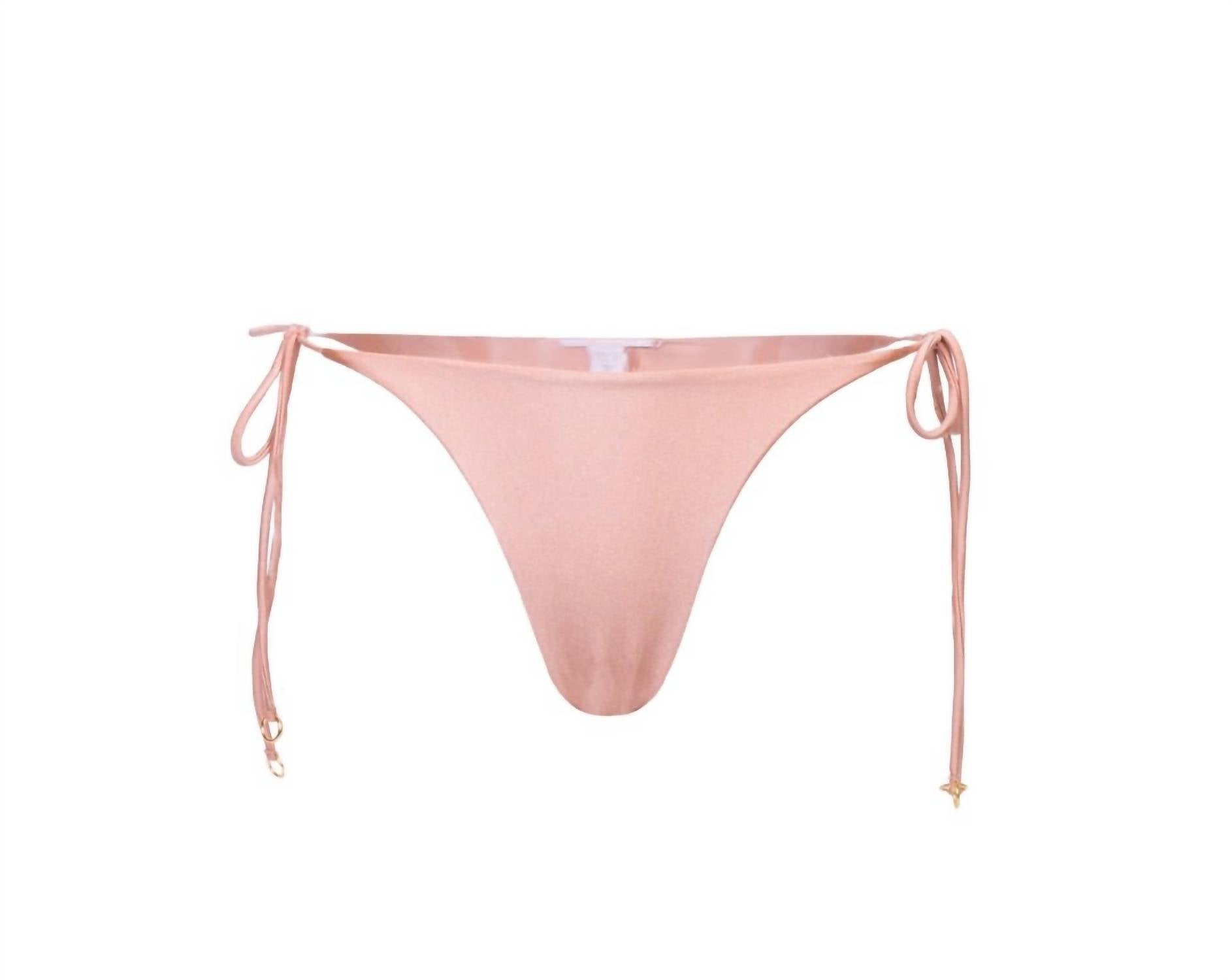 Eleve sua roupa de praia com a Calcinha de Biquíni Feminina Isla da SOAH em um deslumbrante tom dourado-rosa. Projetada para o dia perfeito de verão, esta calcinha de biquíni oferece cobertura extra ousada com amarrações laterais estilosas e detalhes dourados. Fabricada nos EUA, é totalmente forrada para maior conforto e confeccionada para um caimento perfeito. Para um cuidado ideal, lave à mão com água fria para manter a cor vibrante. A modelo veste tamanho pequeno; o produto é tamanho real, mas escolha um tamanho maior para maior cobertura.