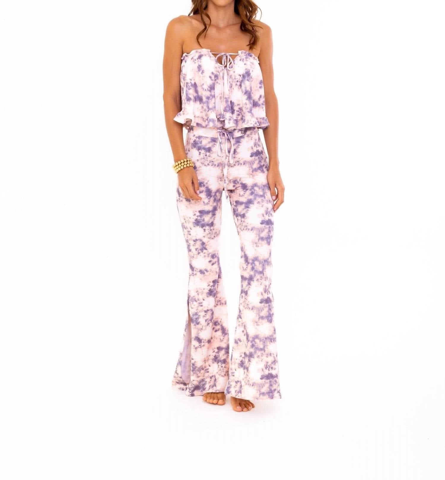 Combine isso com seus jeans e chinelos favoritos para sua próxima noite entre amigas. Apresentamos a Blusa Feminina Tie Dye Willow da SOAH, um item essencial para os dias de praia e passeios de verão, em um charmoso tom blush. Este top cropped sem mangas e sem alças apresenta um decote quadrado e um detalhe divertido de decote em V, complementado por pequenos babados para um acabamento sedutor. Confeccionado com cuidado nos EUA, o top garante um caimento ajustável com seu fecho frontal de amarrar e se conserva melhor lavando à mão. Incorporando perfeitamente a tendência maximalista em um padrão tie-dye, é versátil e estiloso. A modelo veste tamanho P.