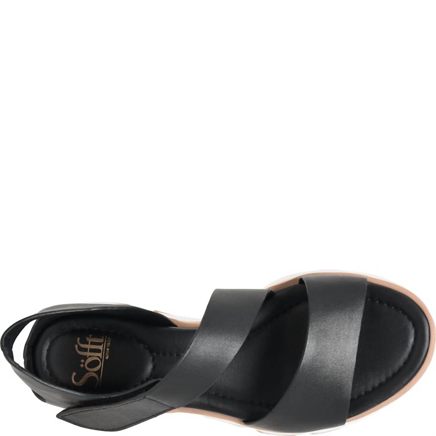 Step into summer with the Women's Mandi Sandals by Sofft, the perfect blend of style and function in sleek black. Crafted with full-grain leather or nubuck, this open-toe sandal features an adjustable hook-and-loop closure for a personalized fit. It boasts a lightweight EVA midsole and a flexible, slip-resistant TPR outsole, with a cushioned footbed for added comfort. Enjoy a comfortable 1.25-inch heel height, ideal for all your warm-weather adventures.