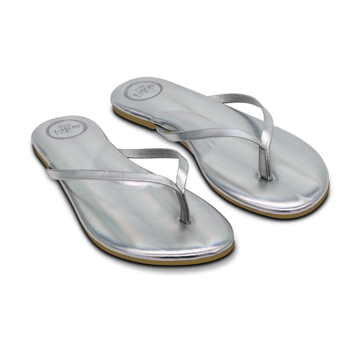 Entre no estilo com a Sandália Feminina Indie da Solei Sea em um deslumbrante Prata Metálico. Com cabedal em couro sintético metalizado, estas sandálias contam com uma palmilha acolchoada em couro sintético confortável para uso o dia todo. Com um design clássico tipo tira e bico aberto, combinam perfeitamente com qualquer guarda-roupa de verão. O salto baixo com solado de borracha garante estabilidade e conforto sem abrir mão da elegância.