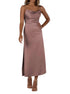 Discover the sophisticated elegance of the Tea-Length Charmeuse Bridesmaid Dress from Sorella Vita in a stunning Smoky Quartz shade. With spaghetti straps and a chic cowl neck, this A-line silhouette combines modern charm with comfort. Featuring an invisible zip back closure, it ensures a seamless fit, ideal for wedding celebrations. Perfectly tailored for women, this dress promises an elegant and effortless style for your special day.