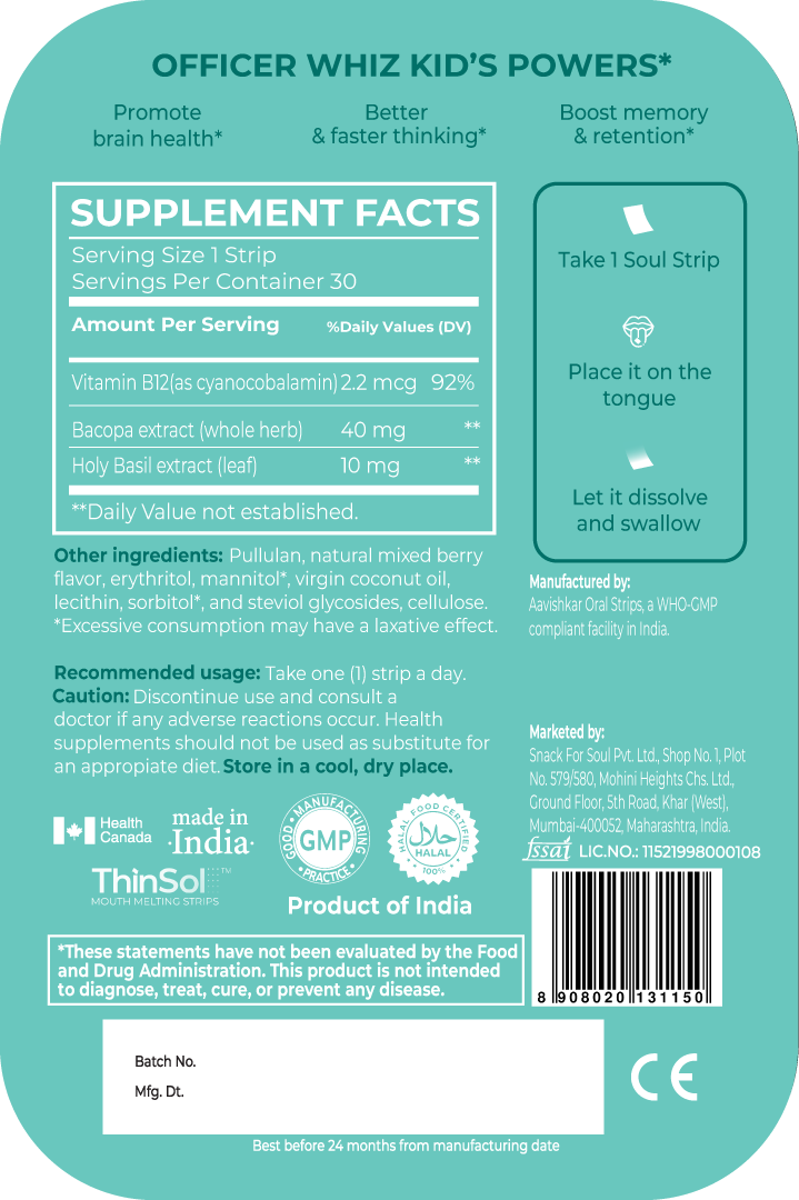 Soul Strips Kids Officer Whiz Kid Vegano Sem Açúcar Sabor Frutas Vermelhas 30 Tiras