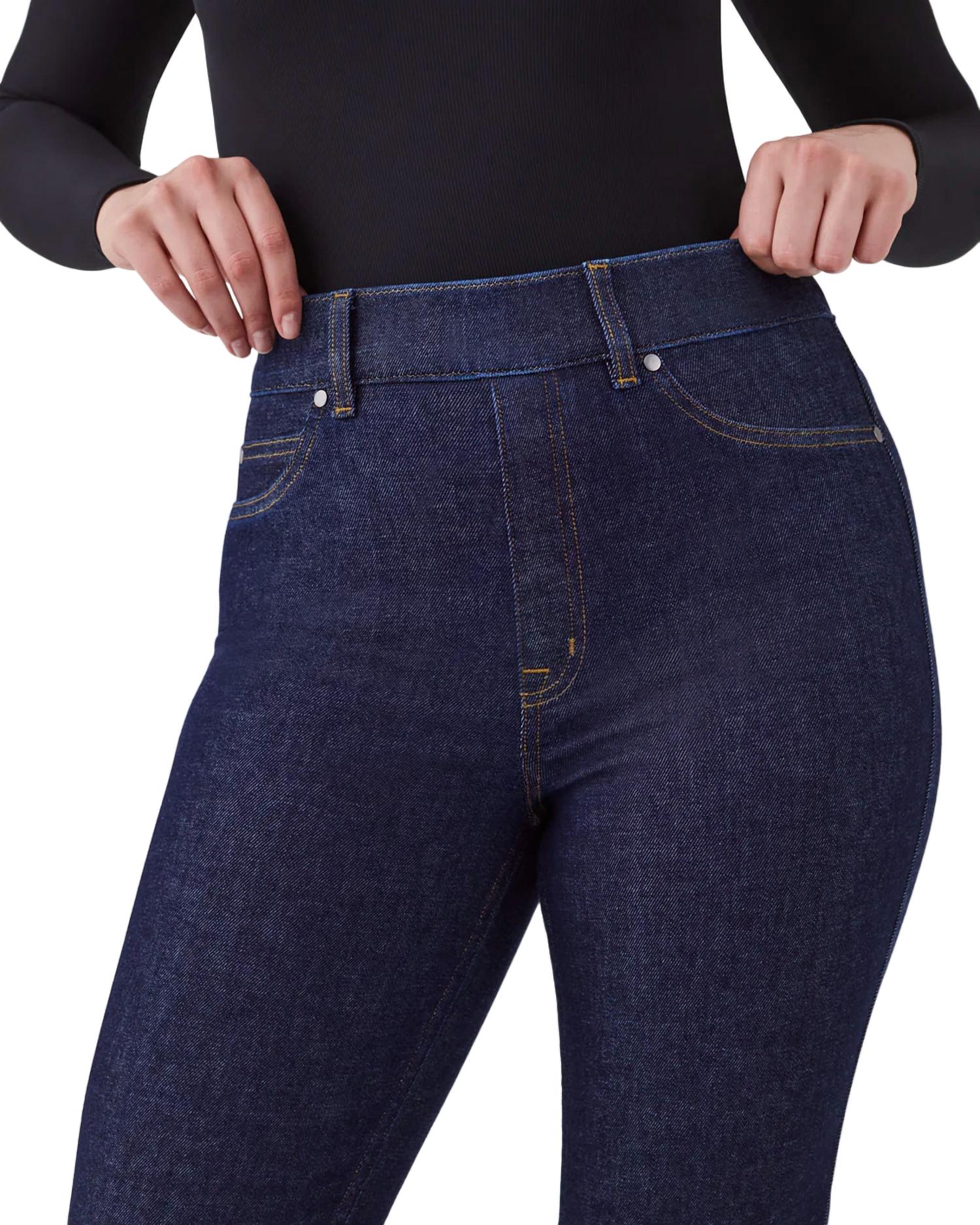 Uma silhueta elegante e surpreendentemente versátil. Confeccionada em jeans elástico premium, cobertura de cintura alta, design pull-on e tecnologia de modelagem com núcleo oculto. Comprimento até o tornozelo com perna levemente alargada. Modelagem pull-on. Corpo: 87% algodão, 11% poliéster, 2% elastano. Forro: 80% poliéster, 20% algodão. Lavagem à máquina com água fria.