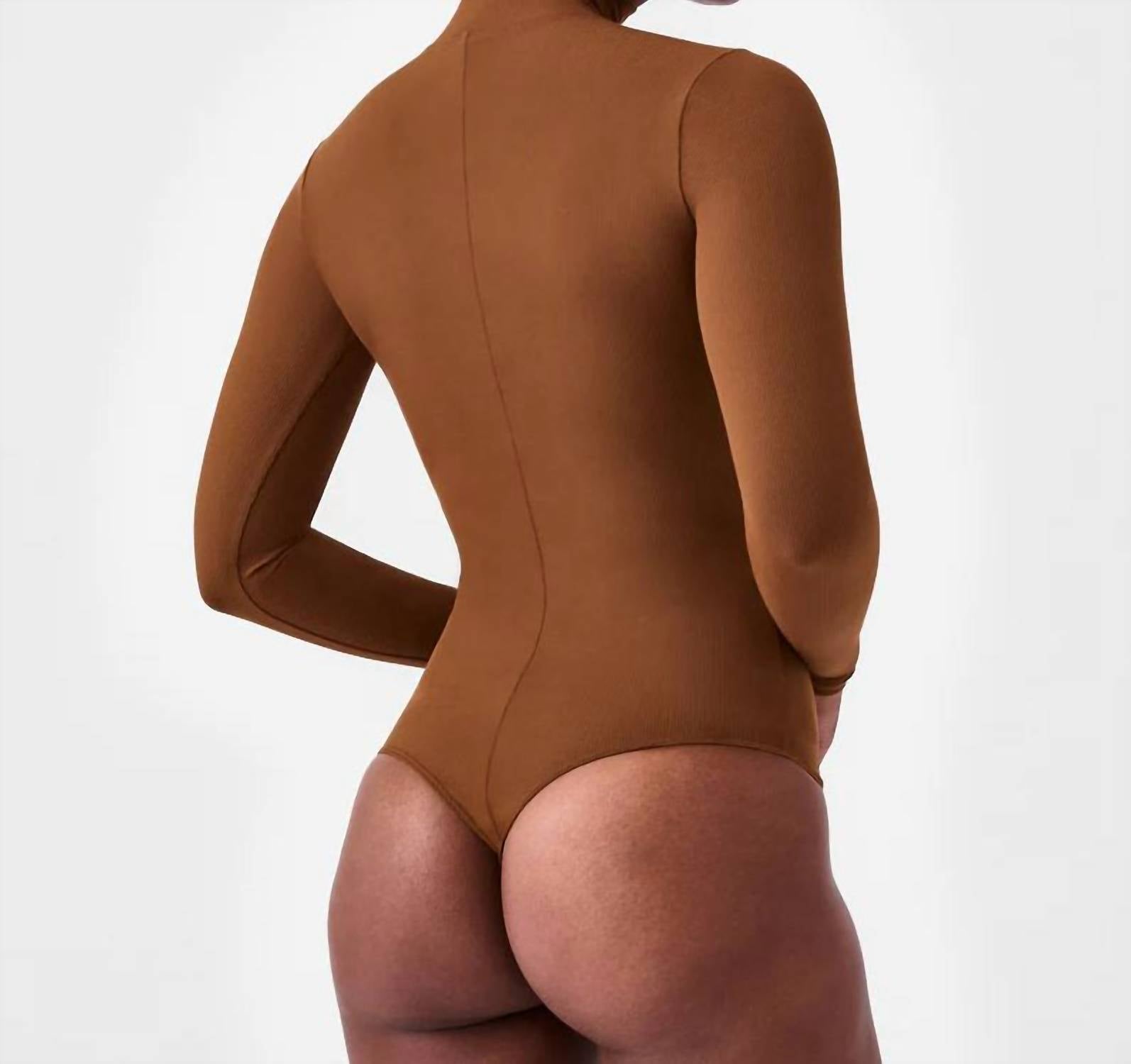Combine este número com seu jeans de cintura alta favorito. Experimente a combinação perfeita de conforto e estilo com o Body de Gola Alta com Manga Longa e Canelado da Spanx, em um elegante tom Caramelo Salgado. Confeccionado em malha elástica confortável com 77% poliéster e 23% elastano, este body garante uma silhueta suave e sem volume. Com um prático reforço de pressão e costas em tiras finas, oferece conforto sem esforço e o luxo de dispensar camadas adicionais. É lavável à máquina e a secagem em temperatura baixa é recomendada, facilitando os cuidados com esta peça essencial importada.