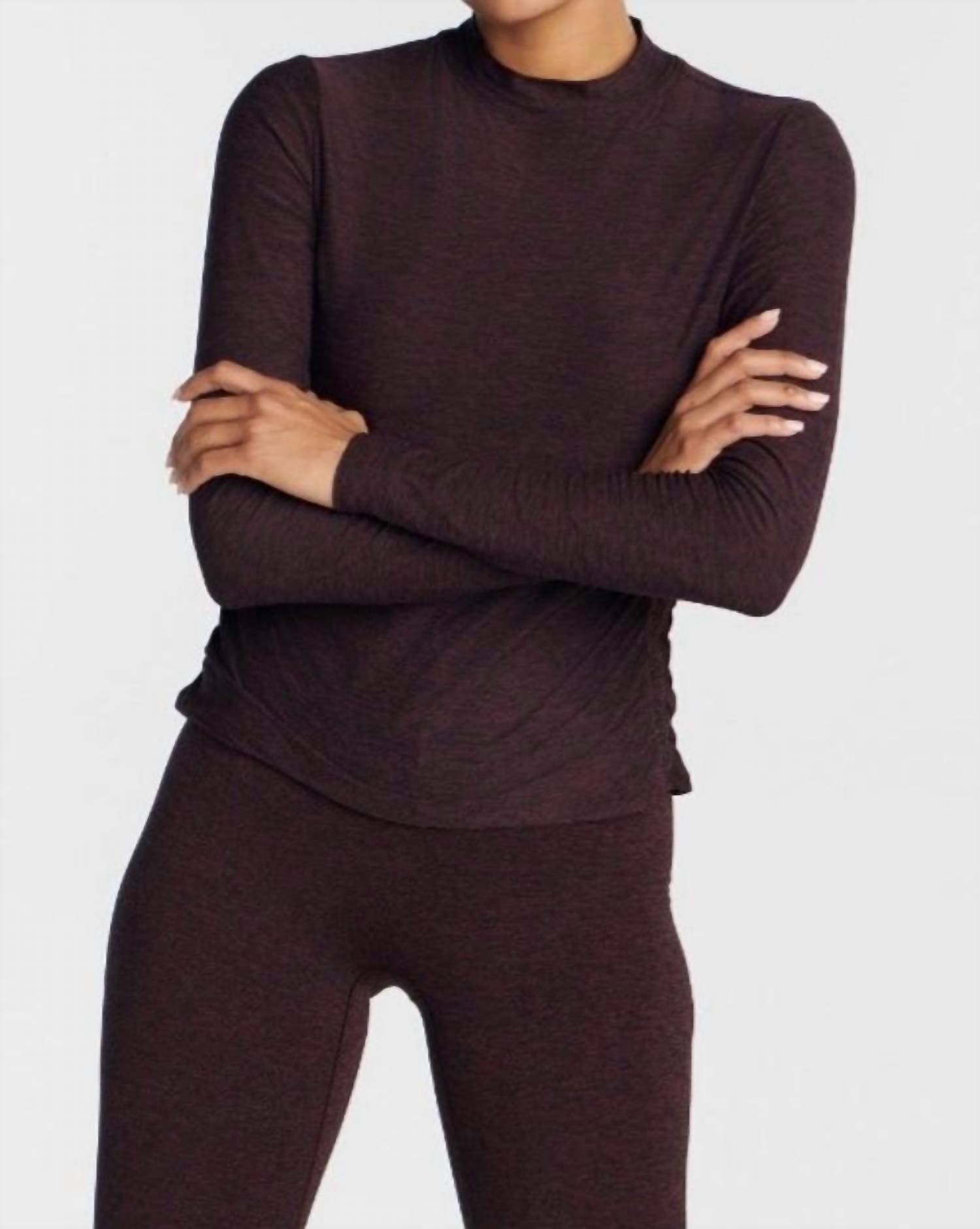 Caimento perfeito, design charmoso, tecido macio. Você vai adorar tudo nesta camiseta de manga comprida. Delicie-se com o conforto luxuoso da blusa Spanx Skysoft Mock Neck em Truffle Heather, com mangas longas para um visual elegante e sofisticado. Esta blusa feminina apresenta uma estampa sólida e uma gola alta elegante, perfeita para looks versáteis. Confeccionada sem comprimento específico, oferece um fecho pull-on para um uso sem esforço. Eleve sua coleção com esta peça essencial, projetada para estilo e praticidade.