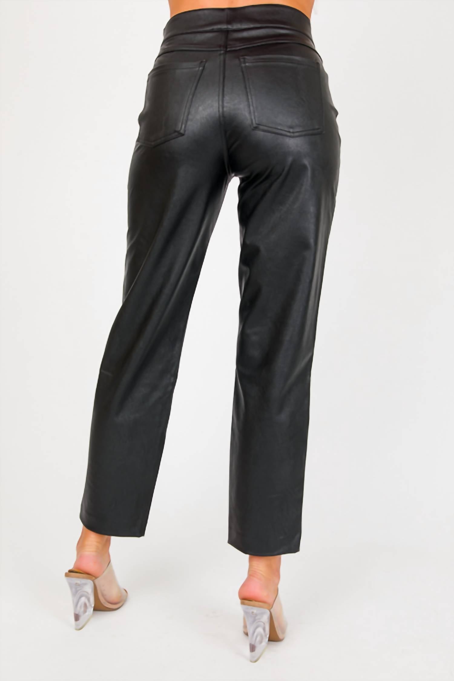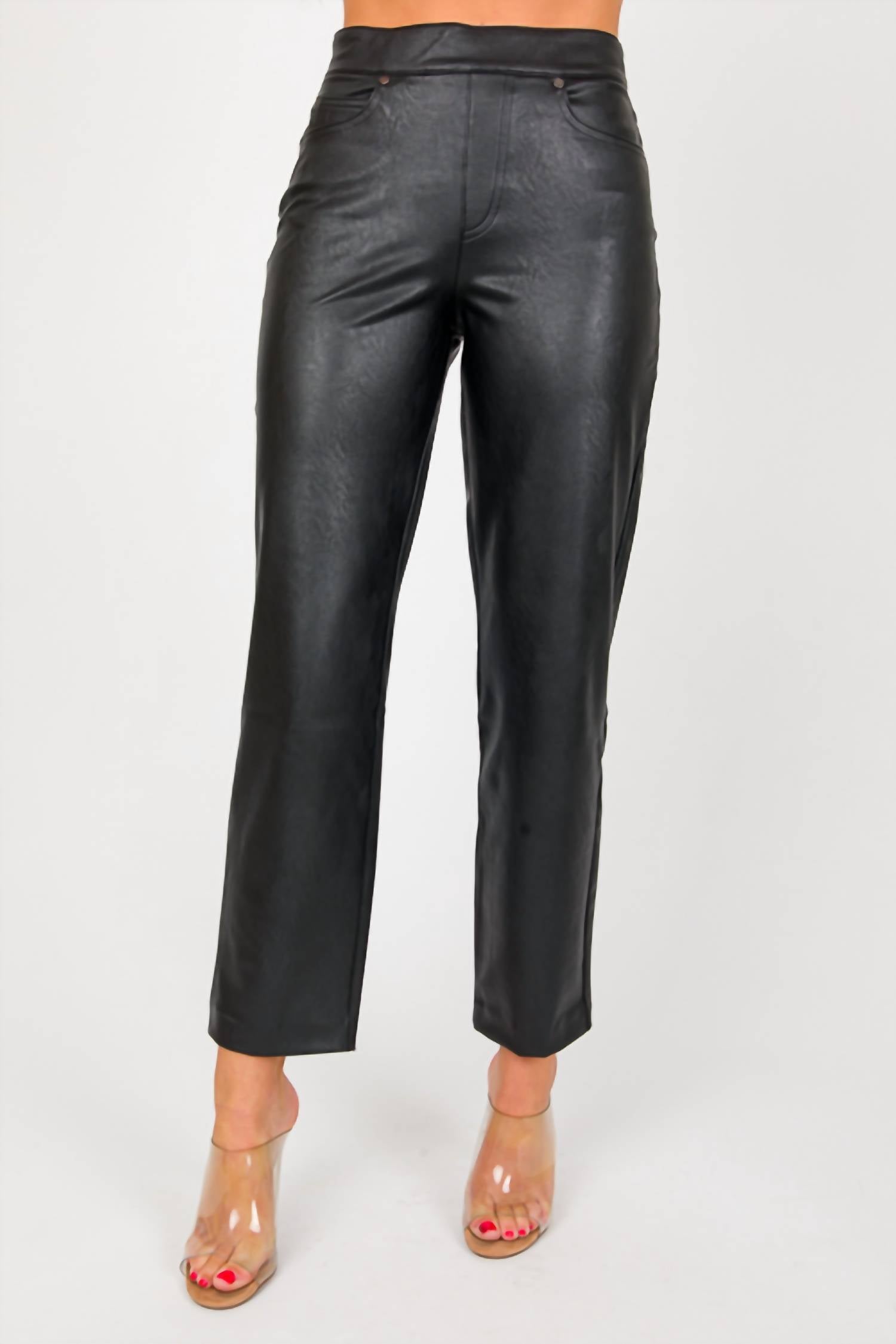 Atualize seu guarda-roupa com estas calças cropped, projetadas para unir sofisticação e praticidade. O corte sob medida garante o máximo conforto durante longos dias ou saídas à noite. Experimente a Calça Slim Straight Pull On da Spanx em Preto Luxe, confeccionada para combinar o visual elegante do couro sintético com conforto incomparável. Desenhada com cós alto e perna reta, esta calça até o tornozelo oferece um caimento perfeito graças à sua tecnologia de modelagem com núcleo oculto. Confeccionada em 92% poliéster e 8% elastano com revestimento de poliuretano e forrada com 80% poliéster e 20% elastano, oferece flexibilidade e facilidade de movimento. O fechamento é simples e a peça pode ser lavada na máquina, com instruções de secagem na horizontal para facilitar os cuidados.