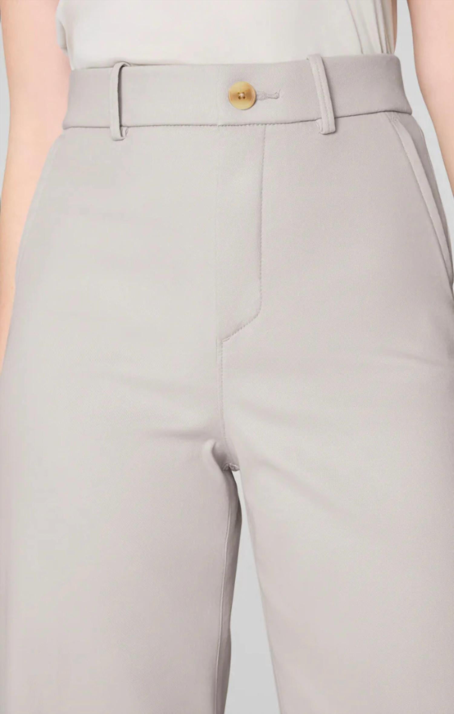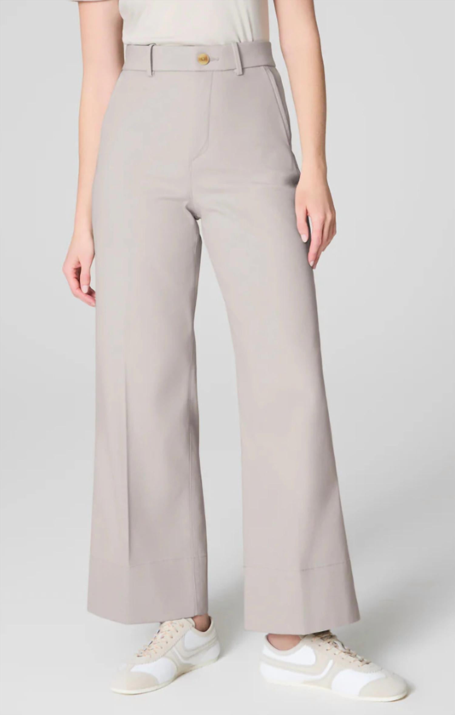 Entre na primavera e no verão com a Calça Cropped de Sarja Elástica Spanx, com Pernas Largas, na cor Bone suave. Esta calça feminina oferece cintura alta e comprimento até o tornozelo, confeccionada em uma mistura de algodão, viscose Lenzing™ Ecovero™, poliéster e elastano Lycra®, garantindo flexibilidade de movimentos e um acabamento suave. Graças ao cós invisível sem zíperes, botões ou bolsos, ela proporciona o máximo conforto com um visual elegante. Instruções de cuidado: Lavar à máquina e secar no varal.