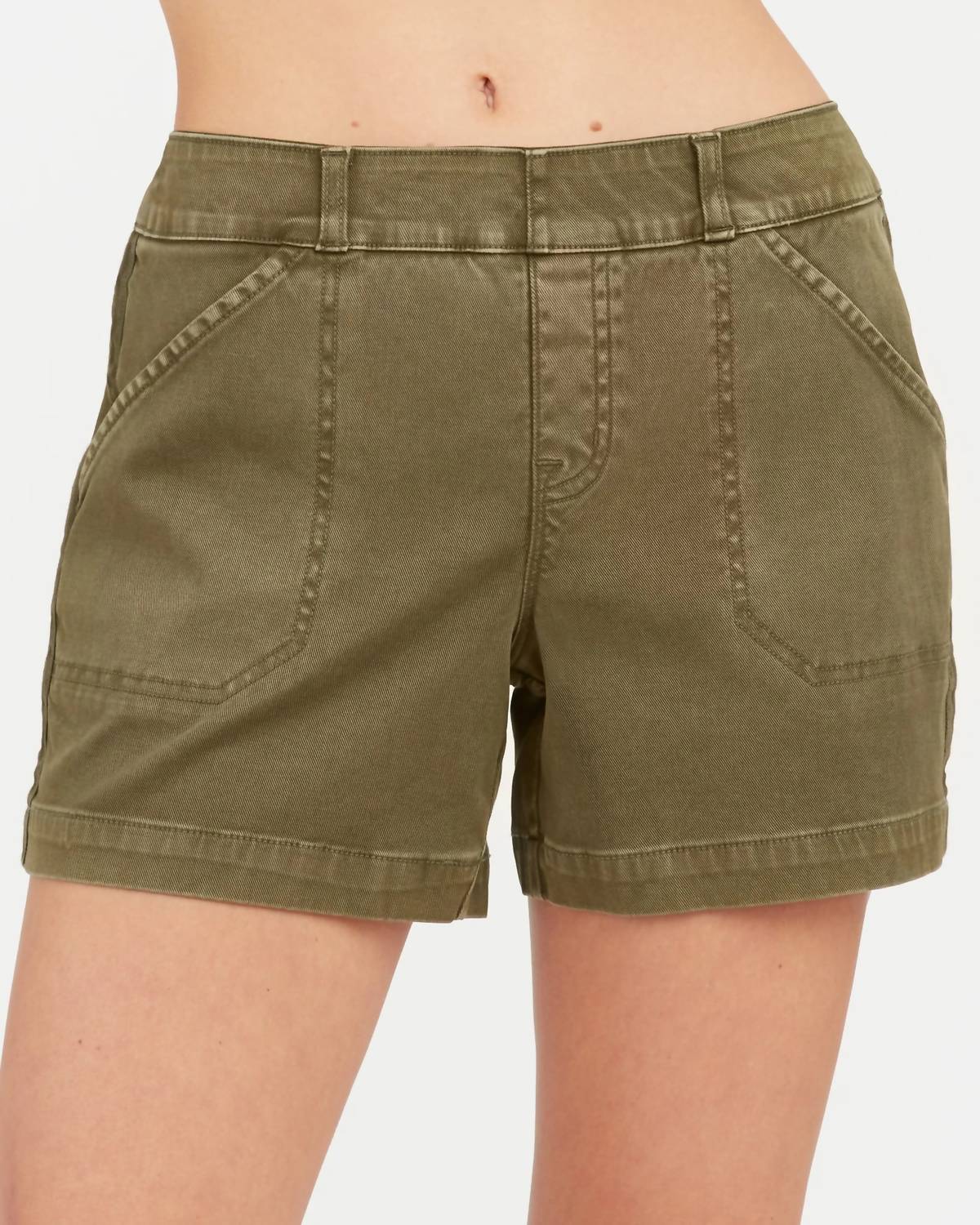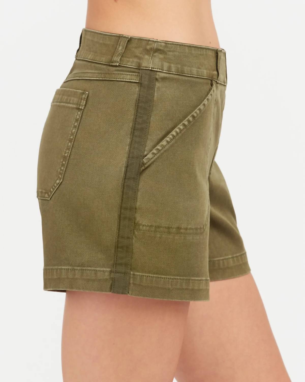 Abrace a mistura perfeita de conforto e estilo com estas bermudas femininas da moda, habilmente projetadas para oferecer um ajuste elegante e uso versátil. Apresentamos o Shorts Stretch Twill da Spanx em um tom oliva refrescante, um acessório elegante perfeito para um dia de praia no verão. Com um design prático e fecho de pressão, este shorts apresenta uma costura interna de 12,7 cm para um ajuste relaxado que se ajusta confortavelmente aos quadris. Feito em sarja 55% algodão, 29% rayon, 13% poliéster e 3% elastano, ele garante uma sensação macia e sedosa, enquanto o modelador Gut Check™ oculto proporciona um controle ideal da barriga. Cuide deste short tingido à mão lavando-o na máquina com água fria, do avesso; ele foi projetado para desbotar gradualmente com o uso e o uso, oferecendo bolsos frontais e traseiros funcionais para o dia a dia.