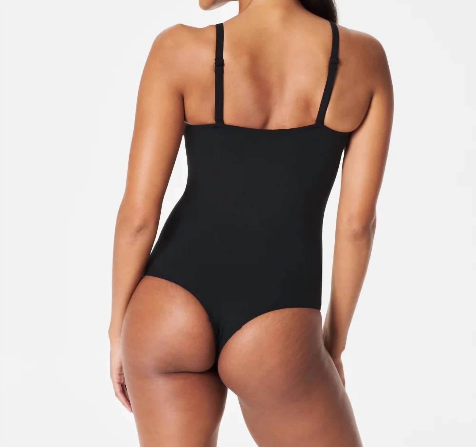 Ajustado e confortável, este body preenche todos os requisitos. Descubra o Body Suit Yourself da Spanx, uma adição chique a qualquer guarda-roupa com seu design preto elegante. Esta peça sem mangas possui alças finas ajustáveis e um decote em V profundo, confeccionada em tecido macio e canelado para uma silhueta ajustada. Com uma composição corporal de 66% poliéster e 34% elastano, e um reforço 100% algodão, oferece tecnologia de modelagem com núcleo oculto para um alisamento sem esforço. Possui fecho pull-on com reforço de pressão para maior praticidade. Cuide dele lavando à máquina em ciclo delicado, do avesso, e secando em temperatura baixa.