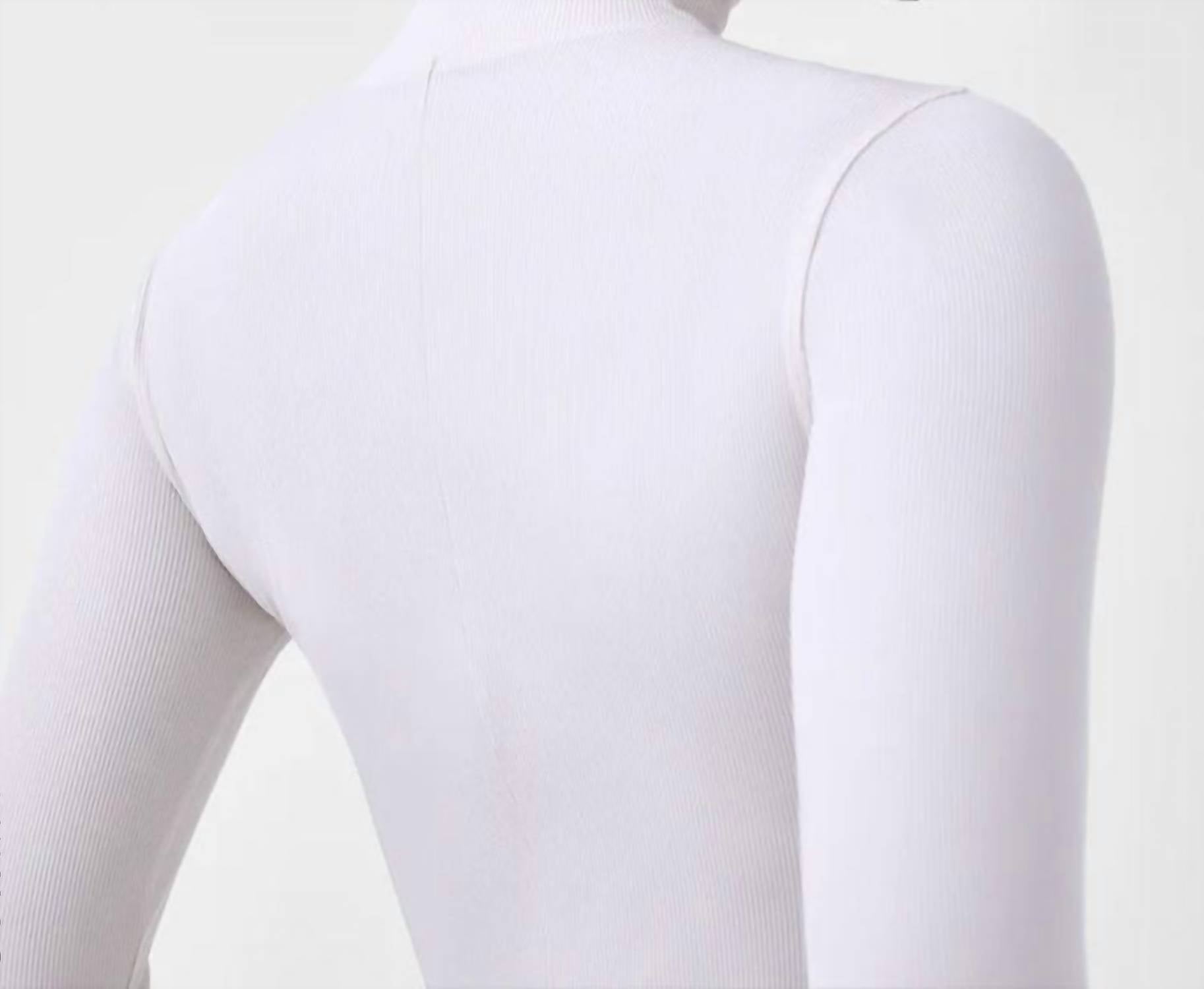 Elevate your wardrobe with the Suit Yourself Ribbed Turtleneck Bodysuit by Spanx, in a timeless Classic Black. This women's bodysuit boasts long sleeves and a textured design, perfect for a sleek, 90s-inspired look. Made from 66% Polyester and 34% Elastane, it features a convenient snap closure and a sophisticated turtleneck. For best care, hand wash and line dry this stylish piece.