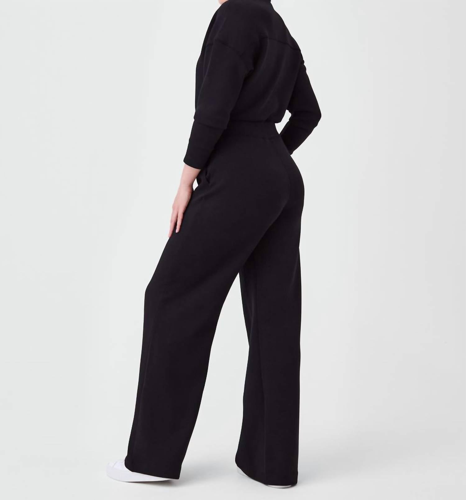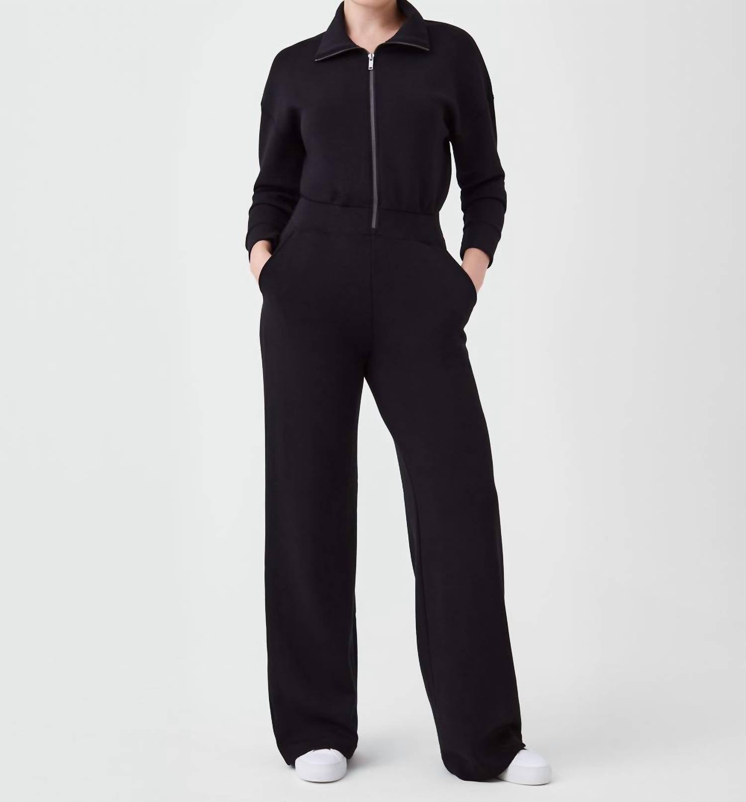 Experimente o máximo conforto com o Macacão Spanx Wide Leg Manga Longa na cor Very Black. Este elegante macacão possui mangas compridas e pernas largas, confeccionado em modal macio, com fecho de zíper que se ajusta à cintura com faixa para um ajuste perfeito. Ideal para atividades físicas ou para relaxar, inclui bolsos para maior praticidade e um corte solto para maior conforto. Fácil de cuidar, com lavagem à máquina e secagem em tambor. Shaina está usando tamanho P.