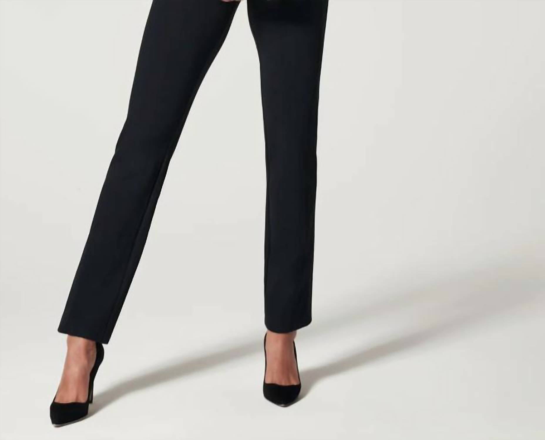 Uma perna reta perfeitamente ajustada que você vai querer em todas as cores! Eleve seu guarda-roupa com a Calça Feminina The Perfect Slim Straight da Spanx, confeccionada em preto clássico para um visual atemporal. Confeccionada em tecido ponte premium, que oferece elasticidade em quatro direções e tecnologia de modelagem com núcleo oculto, esta calça proporciona conforto e uma silhueta elegante. Desenhada com perna reta, ela se ajusta à cintura natural e apresenta um efeito lifting, ideal para uso diurno e noturno. Origem: Importada. Fecho: Puxe para vestir. Cuidados: Lavar à máquina com água fria, ciclo delicado, secar no varal e passar a ferro em temperatura baixa, se necessário.