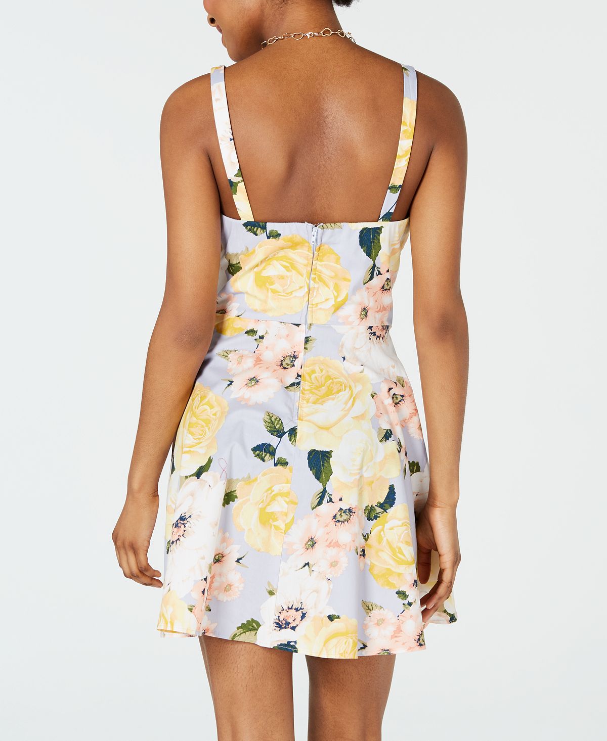 Vestido curto feminino sem mangas com recorte floral e bolsos, decote coração, azul, tamanho 7