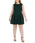 Aproximadamente 61 cm de comprimento, do centro do pescoço até a bainha. O comprimento é baseado no tamanho 2X e varia 1,5 cm entre os tamanhos. | Gola redonda; modelagem justa e flare | Zíper nas costas e fecho de botão tipo fechadura | Acabamento em renda de crochê nos ombros; saia plissada; bolsos nos quadris | Sem forro | Poliéster/elastano