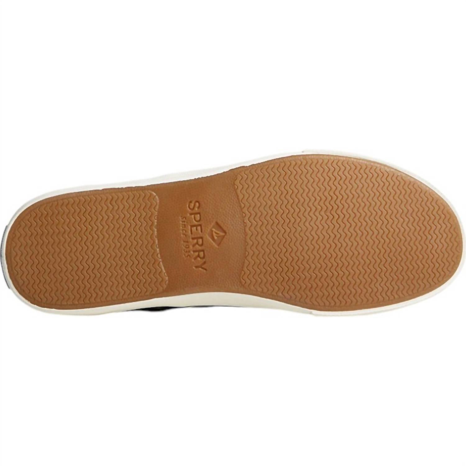 Entre no estilo atemporal criado para combinar sustentabilidade moderna com design clássico. Apresentando um tom marinho refinado. Eleve sem esforço qualquer conjunto casual. Cabedal, feito de uma mistura de algodão parcialmente reciclado. Ressalta o compromisso com a moda ecologicamente correta. Cadarços exclusivos em couro cru introduzem um toque de estilo marítimo. A construção inovadora com reforço oculto garante conforto fácil ao calçar sem comprometer o ajuste. Ostenta um salto plano e bico redondo para facilidade durante todo o dia. Atendendo a tamanhos médios e largos. Parte da coleção SeaCycled™. Cabedal 65% algodão reciclado. Ilhós de metal contêm 70% de material reciclado. Cadarços exclusivos em couro cru. Construção com reforço oculto para fácil colocação e retirada. Solado de borracha que não deixa marcas com tecnologia Wave-Siping™ moldada para maior tração.